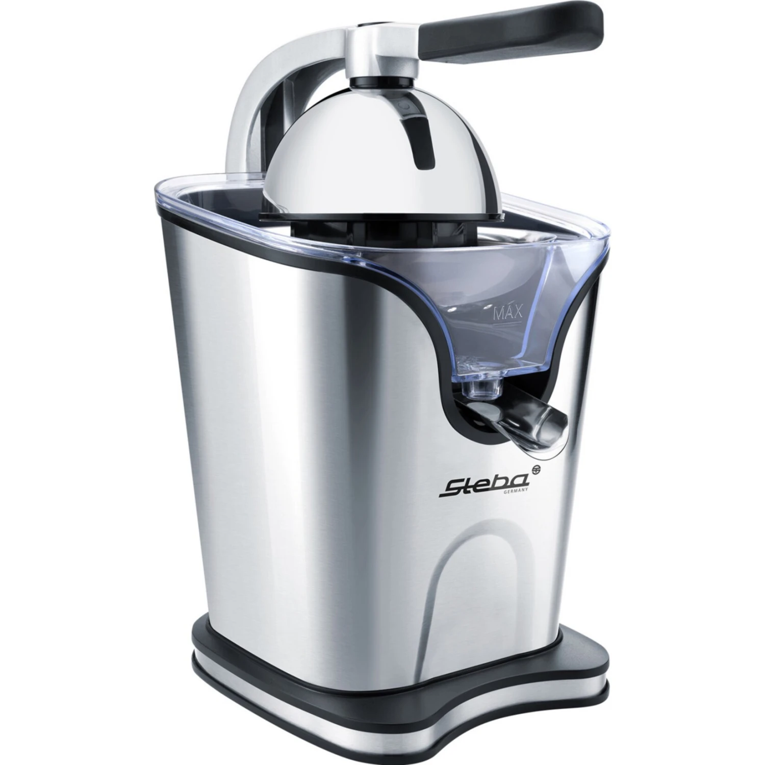 Die Steba ZP 3 besteht aus einem eleganten Edelstahlgehäuse und besitzt einen praktischen Hebel-Pressarm für eine optimale Saftausbeute. Neben einer Start / Stopp Automatik ist der Motor der ZP 3 besonders geräuscharm. Mit den zwei Presskegeln für unterschiedliche Fruchtgrößen lassen sich Limetten, Orangen, Zitronen und Grapefruits auspressen. Der Saftauslauf besitzt eine Stoppfunktion und dank des Edelstahlsiebs gelangen keine Kerne oder Fruchtfleisch in den Saft. Alle abnehmbaren Teile sind spülmaschinengeeignet.