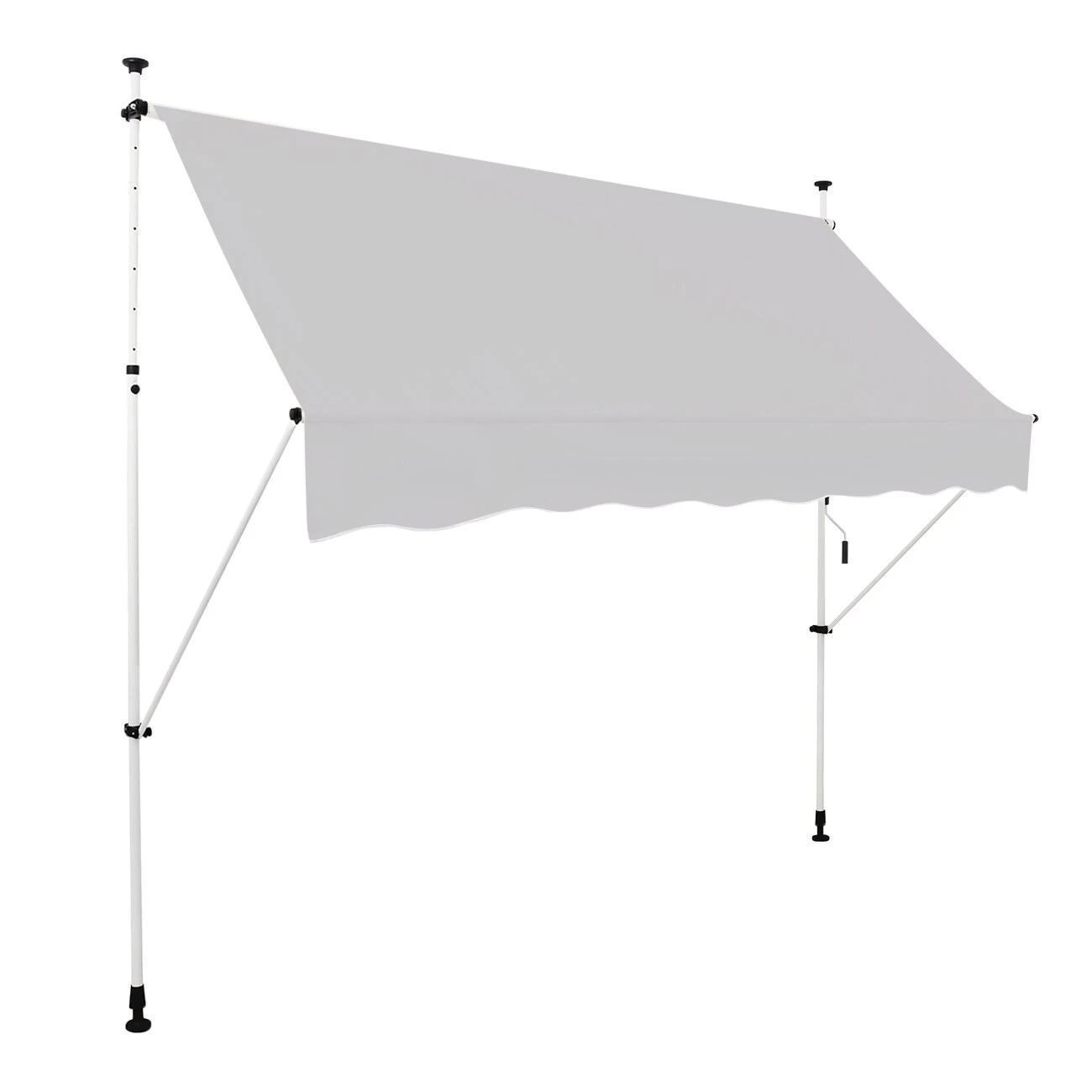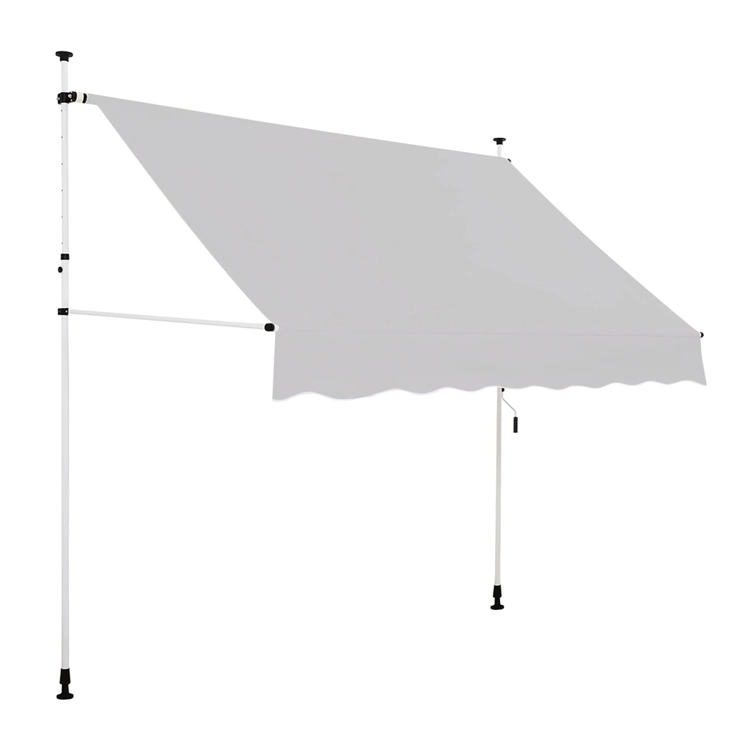 Im Vergleich mit fest installierten Markisen sichern Sie sich mit diesem Modell mehrere Vorteile. Sie bringen diese Markise im Handumdrehen an. Der wesentliche Schritt besteht darin, die beiden Teleskopstangen zwischen Boden und oberen Befestigungspunkten anzubringen. Die Länge der Teleskopstangen passen Sie mit minimalem Aufwand an. Nach dem Lockern der Schrauben sind sie problemlos aus- und einziehbar. Anschließend stellen Sie den Neigungswinkel ein, indem Sie die beiden Ausfallarme entsprechend verlängern oder verkürzen. Diese einfache Montage und Bedienung sind nennenswerte Pluspunkte. Sie entgehen unnötiger Arbeit, zudem beschädigen Sie Ihr Gebäude nicht. Darüber hinaus setzen Sie diese Klemmmarkise vielseitig ein. So können Sie diese im Campingurlaub für Ihr Wohnmobil nutzen, nach der Heimkehr wieder als Terrassen- oder Balkonmarkise.