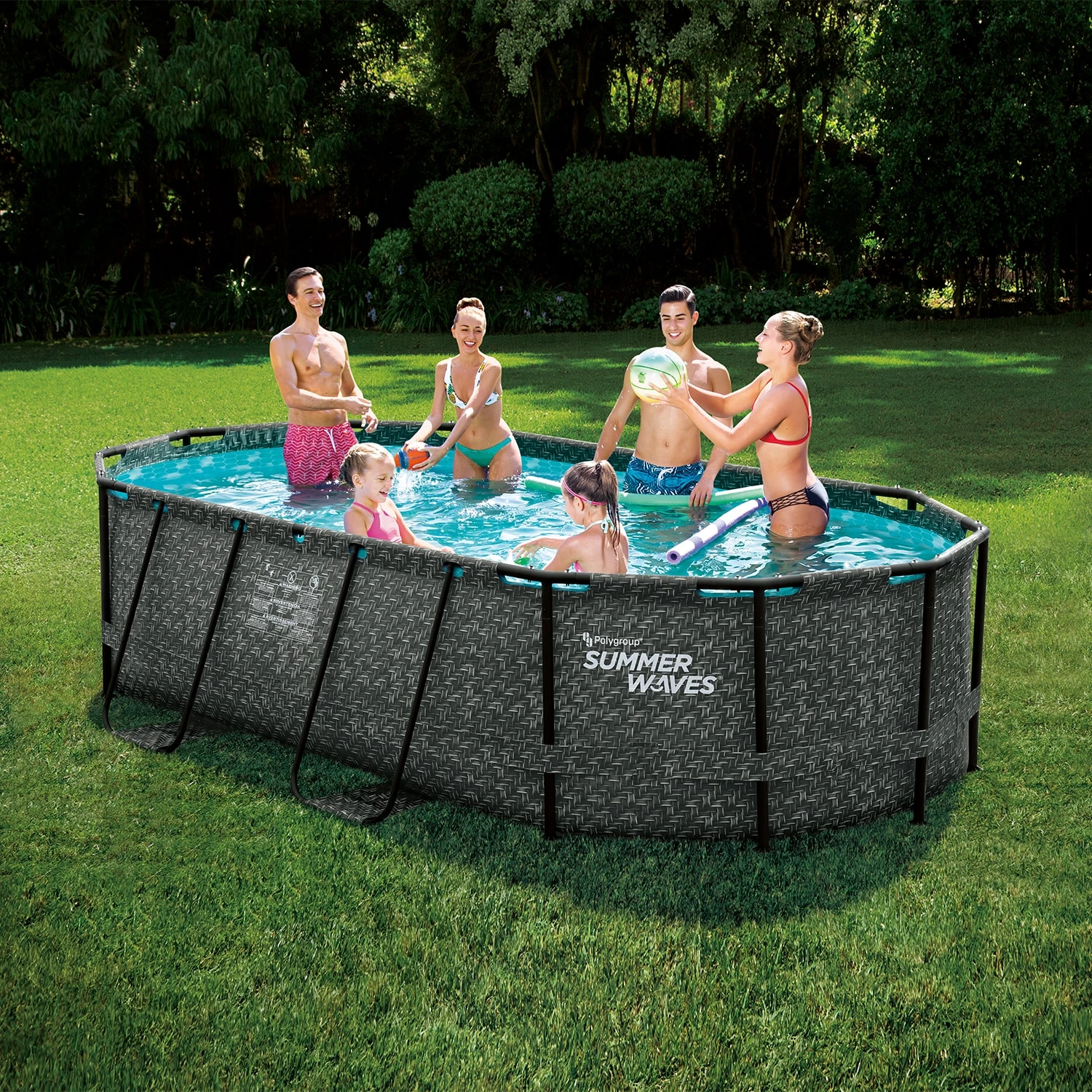 Dieser Summer Waves Pool ist ein oberirdischer, runder Rahmen-Pool in schlichtem Lichtgrau.