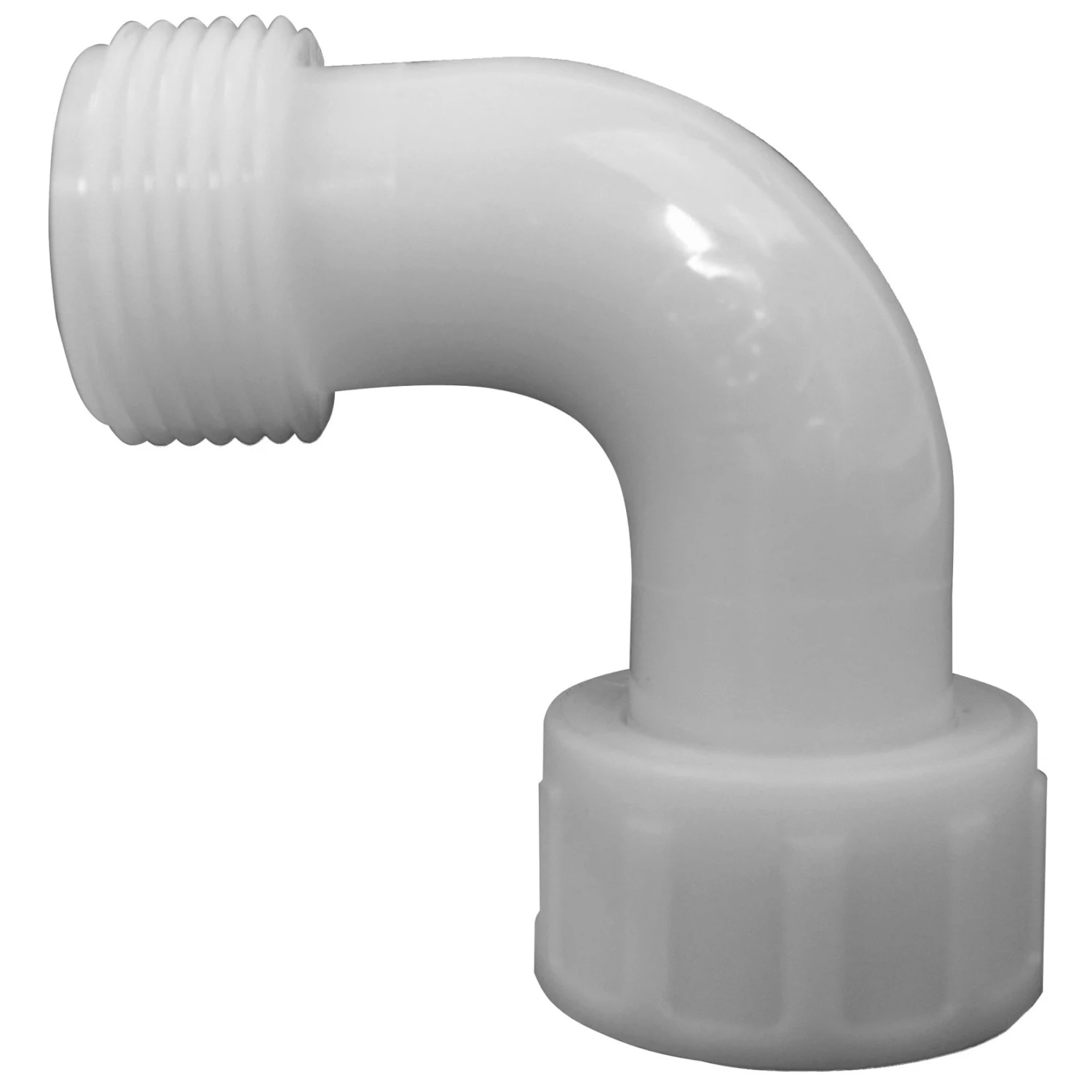 Universell einsetzbarer Anschlussbogen mit 1″“ IG (30,93 mm) x 1″“ AG (33,25 mm).