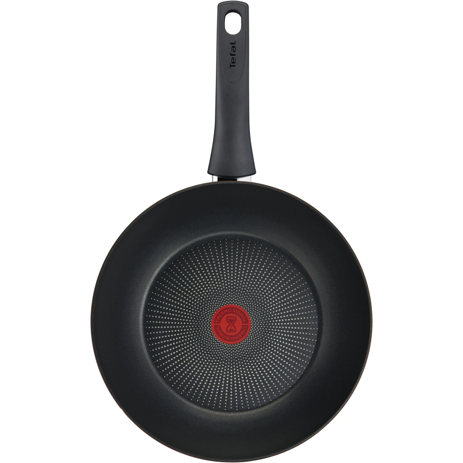 Die Wokpfanne Resource von Tefal vereint Umweltverantwortung und Spitzenleistung. Das umweltfreundliche Design besteht aus 100% recyceltem Aluminium im Pfannenkörper und erzeugt 90% weniger Produktionsabfälle. So kann man mit jeder Pfanne dazu beitragen, die Umwelt zu schonen! Die Resource Pfanne ist langlebig und robust. Die extra tiefe Form eignet sich ideal für köstliche Schnellbratgerichte. Die extrem widerstandsfähige Titanium Antihaft-Versiegelung erleichtert das Kochen und die Antihaft-Außenbeschichtung sorgt für maximalen Komfort bei der Reinigung. Außerdem verfügt sie mit dem THERMO-SPOT über einen in die Pfanne integrierten Temperaturanzeiger. Er zeigt an, wann die Pfanne die optimale Brattemperatur erreicht hat. Der ergonomische Thermokunststoffgriff macht die Wokpfanne Resource backofengeeignet bis 175°C. Die Pfanne eignet sich für alle Herdarten, auch für Induktion.