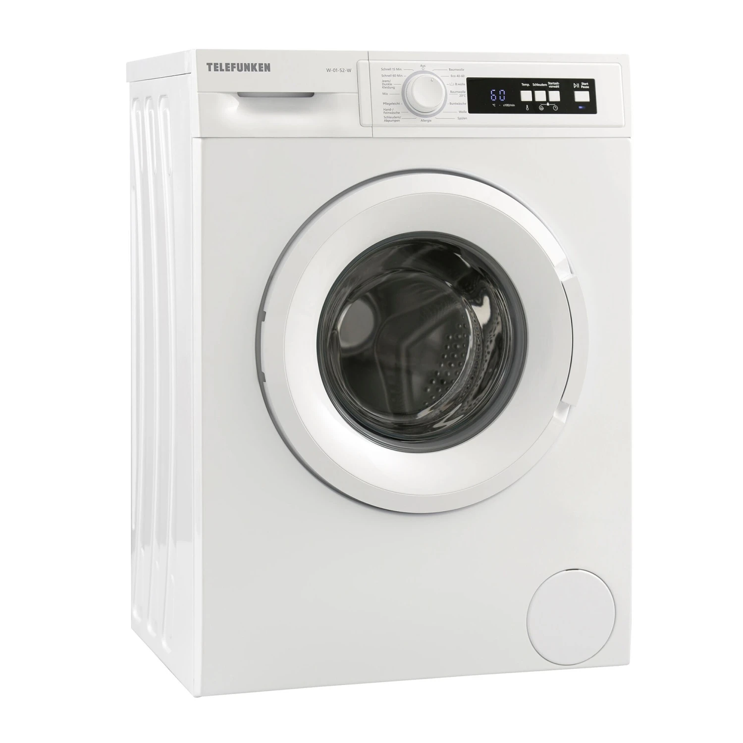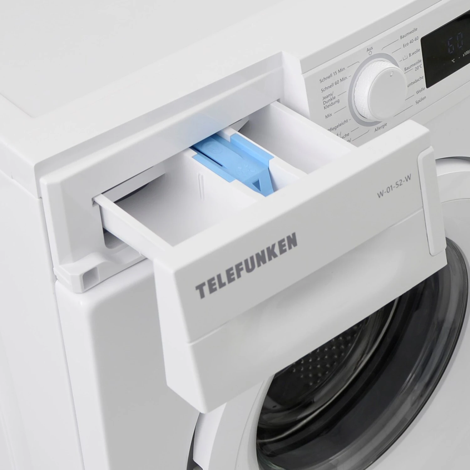 Die Waschmaschine von Telefunken bietet mit einem Fassungsvermögen von 5 kg ausreichend Platz für einen durchschnittlichen Familienhaushalt. Außerdem verfügt sie über zahlreiche nützliche Features wie z.B. eine Kindersicherung und einen Überlaufschutz. Für eine geringe Restfeuchte sorgen eine Schleuderdrehzahl von bis zu 1000 Umdrehungen pro Minute und die Schleudereffizienzklasse C. Das Gerät ist freistehend und fügt sich mit seinem zeitlos eleganten Design problemlos in jede Wohnung ein.