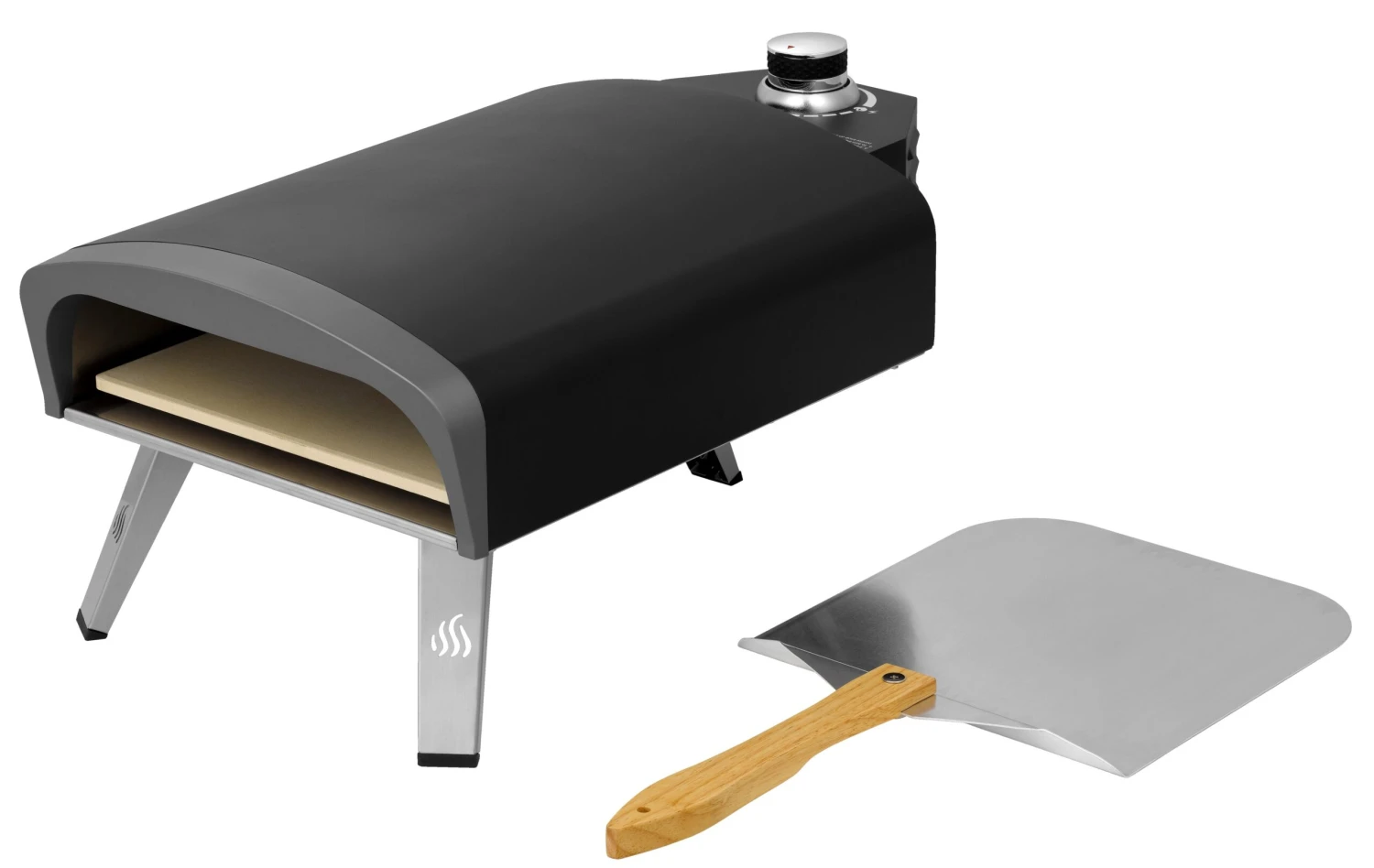 Durch die 3 ausklappbaren Standbeine lässt sich der Gas Pizzaofen sehr schnell aufbauen.