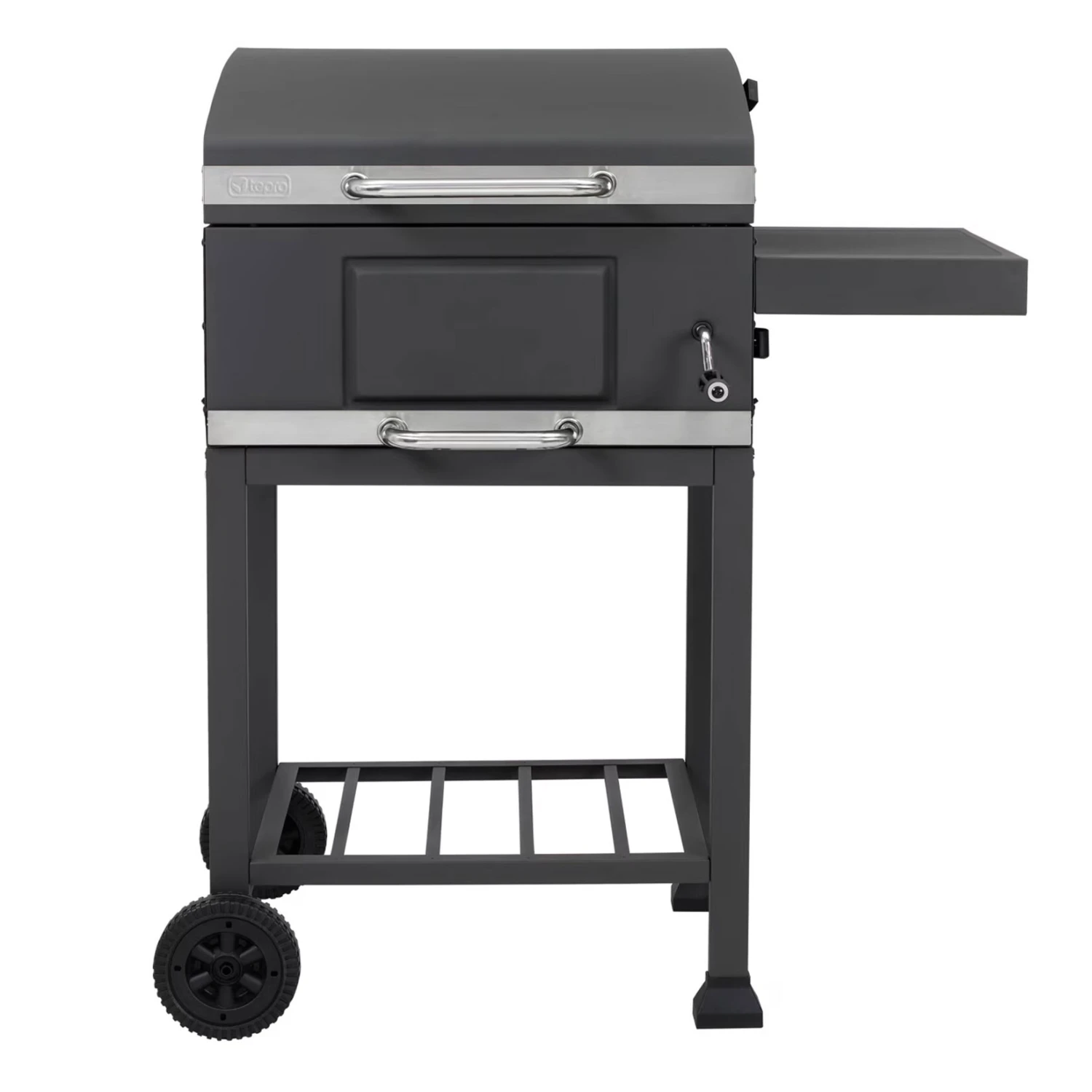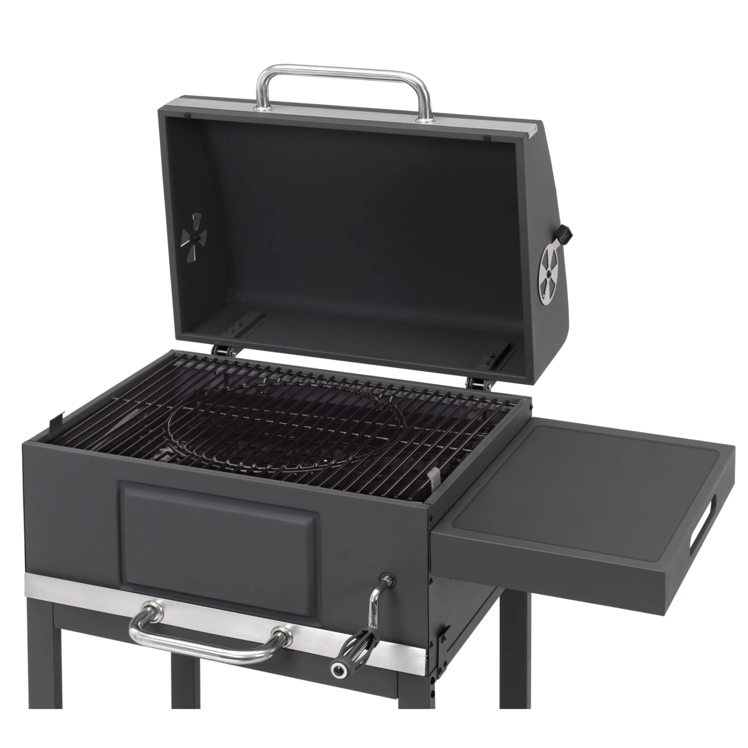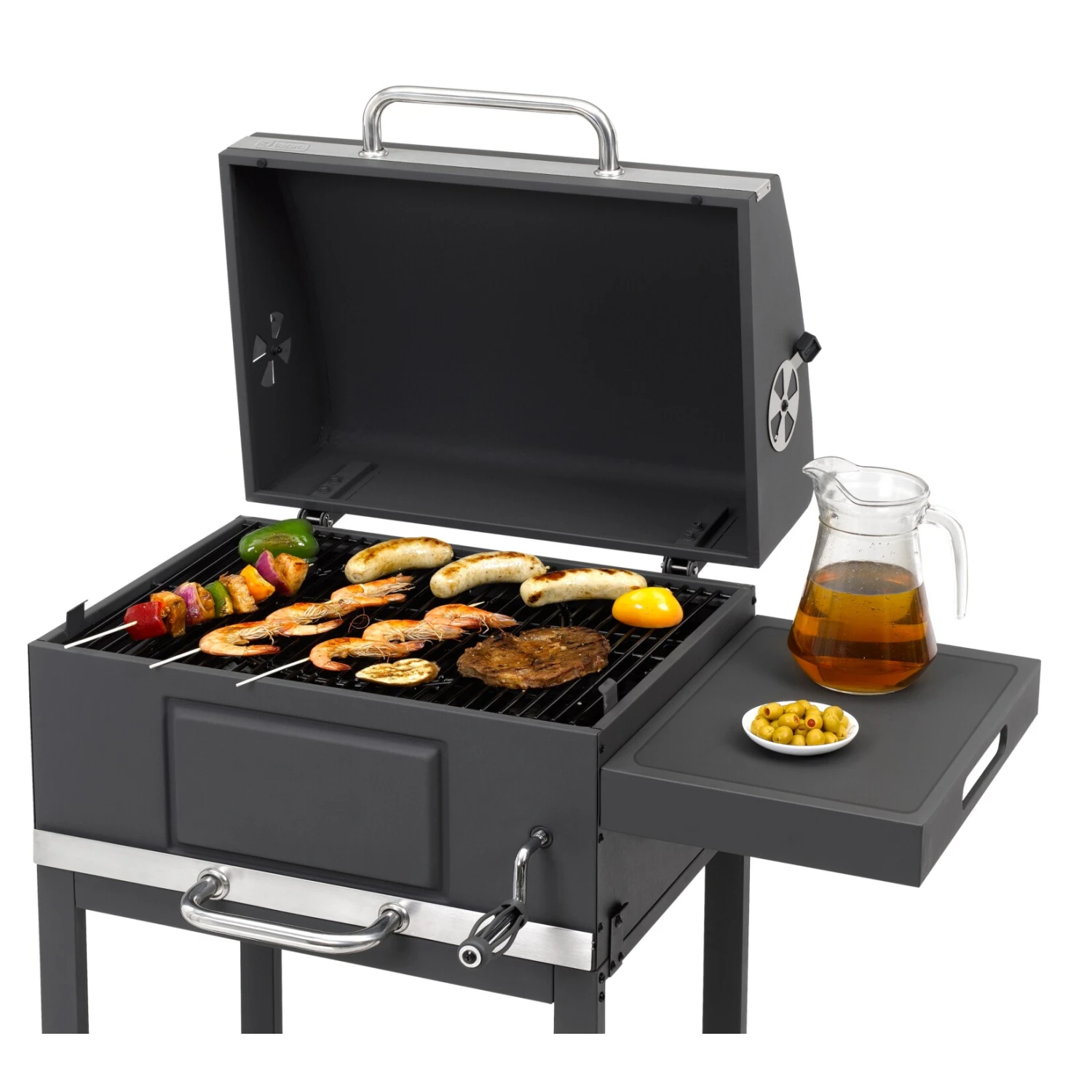- emaillierte Holzkohlenwanne, mittels Kurbel höhenverstellbar