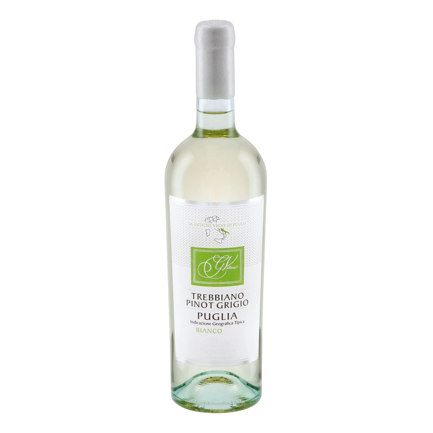 Elegant und frisch präsentiert sich dieser harmonische Weißwein. Das Zusammenspiel von Trebbiano und Pinot Grigio begeistert mit Nuancen von grünem Apfel, frischen Zitrusfrüchten und einem Hauch von Pfirsich. Die ideale Genusstemperatur von 8-10° C betont seine angenehme Frische und schöne Frucht.