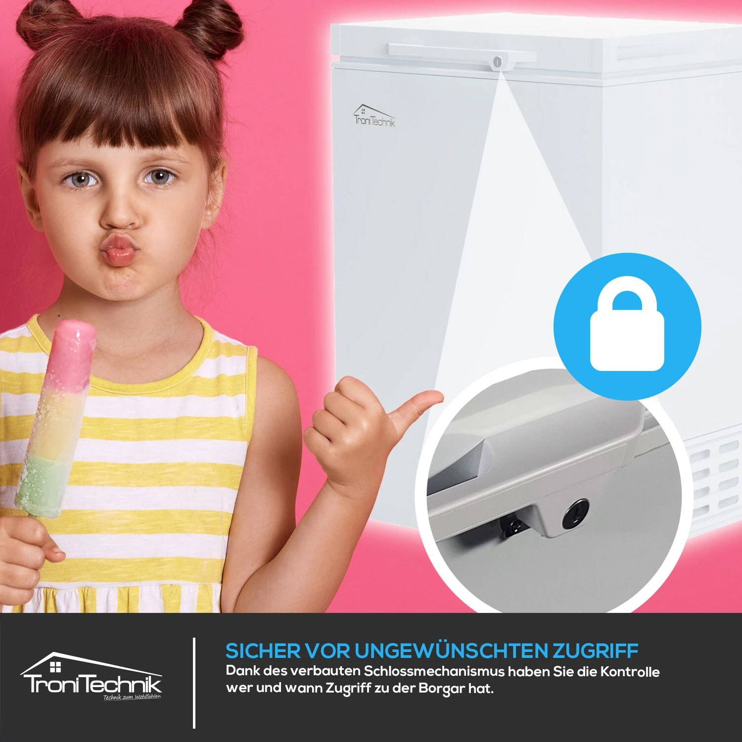 Da die Gefriertruhe frostfrei ist, wird eine Eisbildung im Kühlbereich verhindert und ein Abtauen ist nicht nötig.