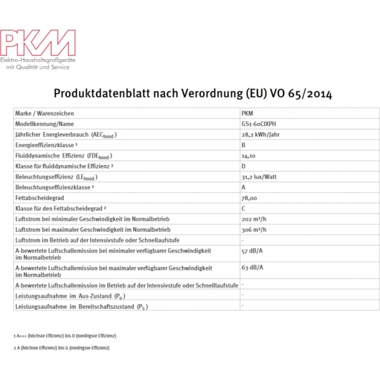PKM GS1-60 CIXPH Edelstahl/Glas Dunstabzugshaube 60cm + Aktivkohlefilter CF130