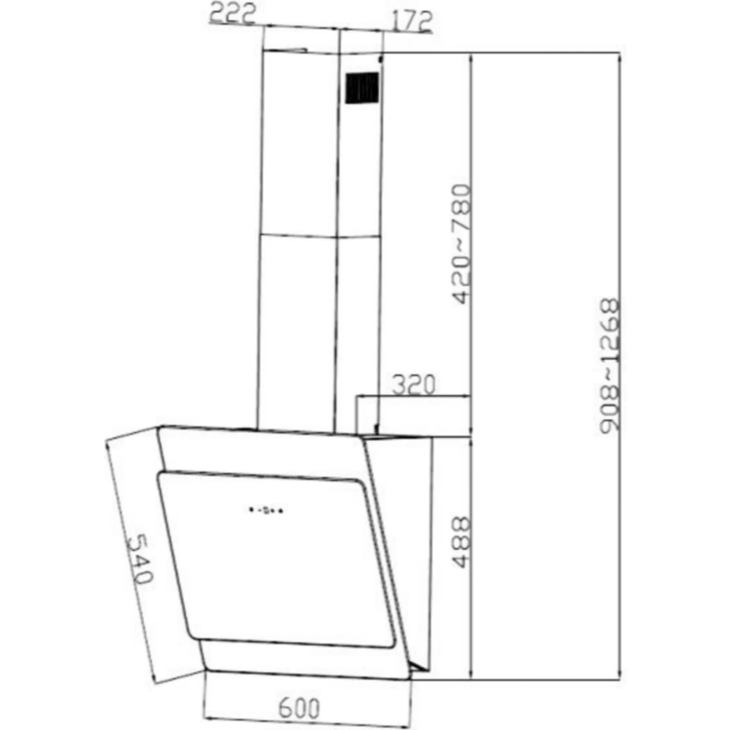 Geräteabmessungen H x B x T in cm: 86,00~126,00 x 60,00 x 32,00