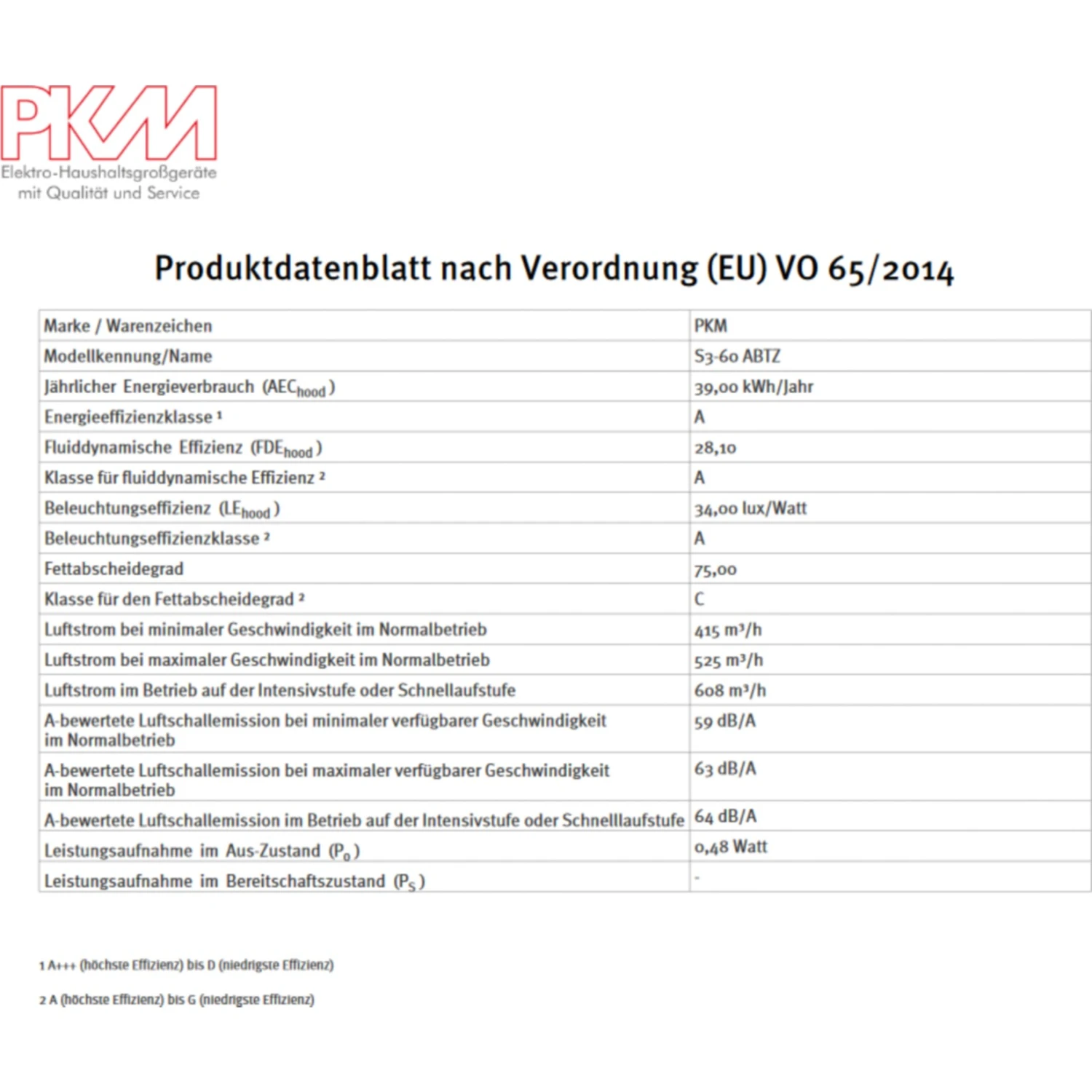 jährlicher Energieverbrauch (AEChood): 39,0 kWh/Jahr