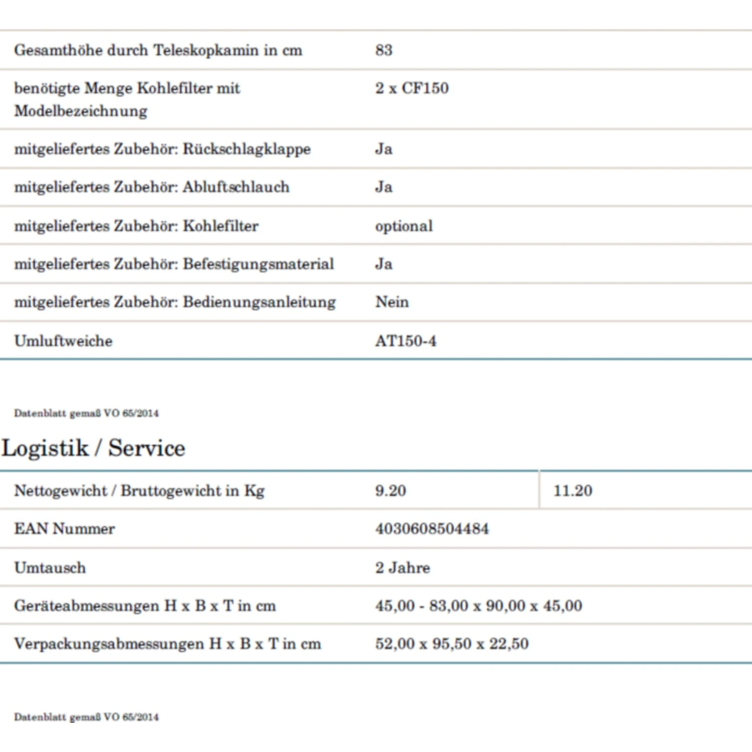 - Abluft*- oder Umluftbetrieb möglich ,die optionalen Aktivkohlefilter CF150 neutralisieren den Geruch im Umluftbetrieb.