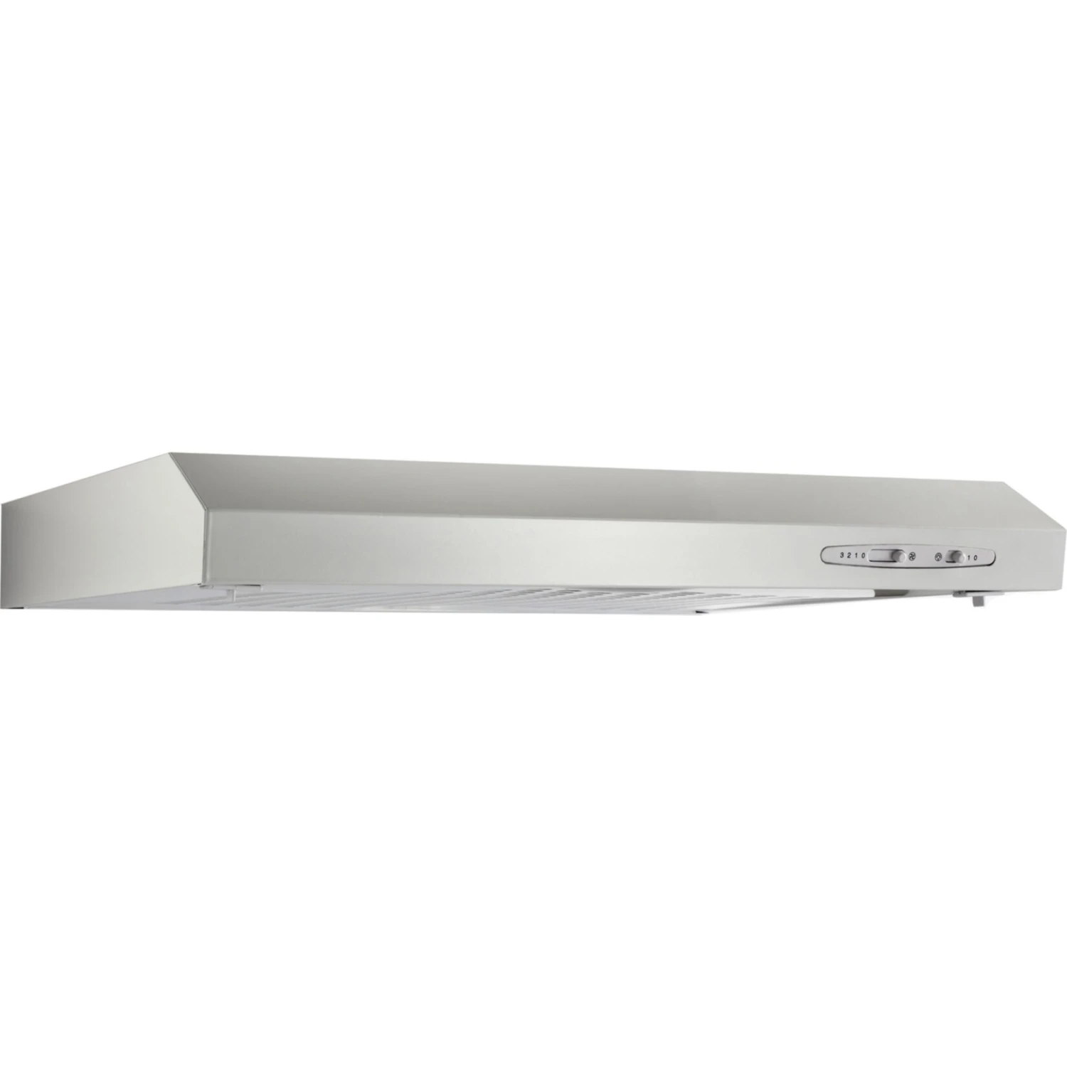 Die funktionale und platzsparende Unterbau Dunstabzugshaube aus silber/grau lackiertem Stahl wird steckerfertig geliefert und ist mit einem mit Acryl-Fettfilter ausgestattet (eine Unterbauhaube mit Spülmaschinenfestem Metallfettfilter finden Sie auch in unserem Shop: Model KHU-601).