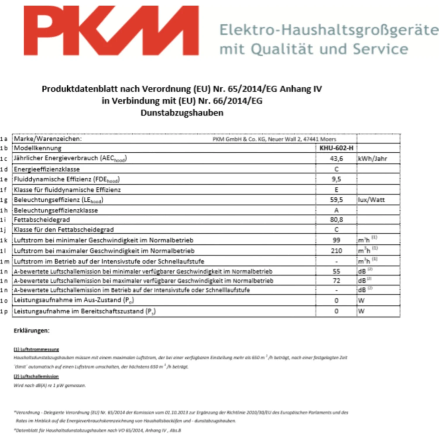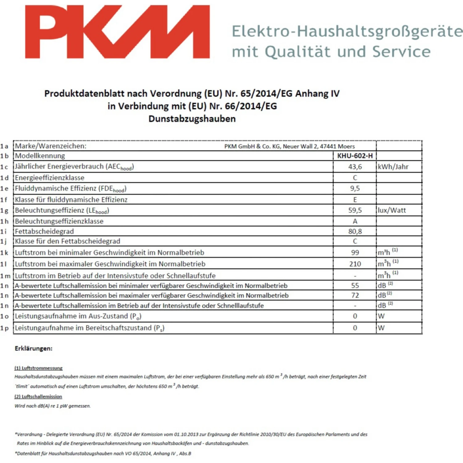 Umluftset PKM KHU-602-H Dunstabzugshaube Breite 60cm Unterbau-Abzugshaube Unterbauhaube