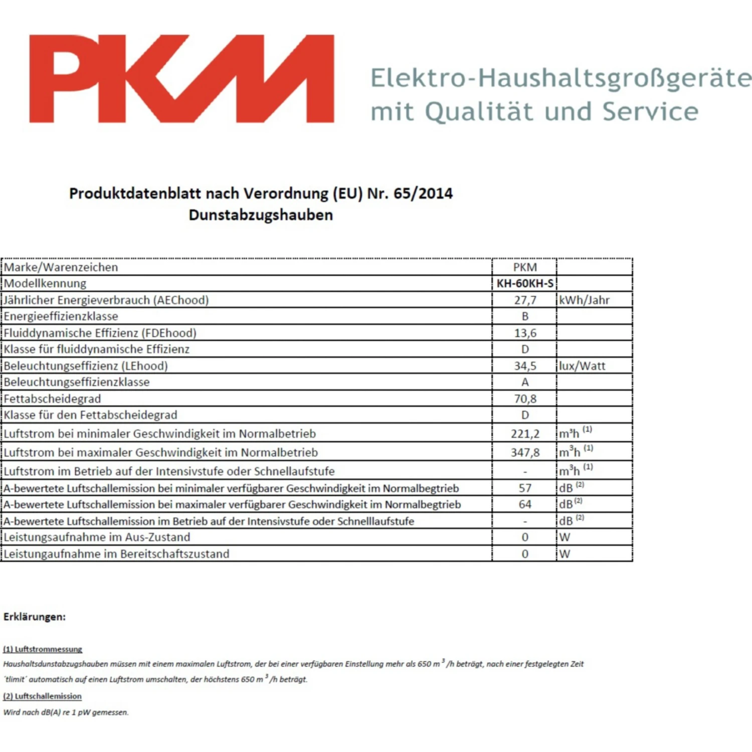 Umluftset PKM KH-60KH-S Edelstahl Kaminabzugshaube – Dunstabzugshaube – Breite 60cm – Wandesse – Esse