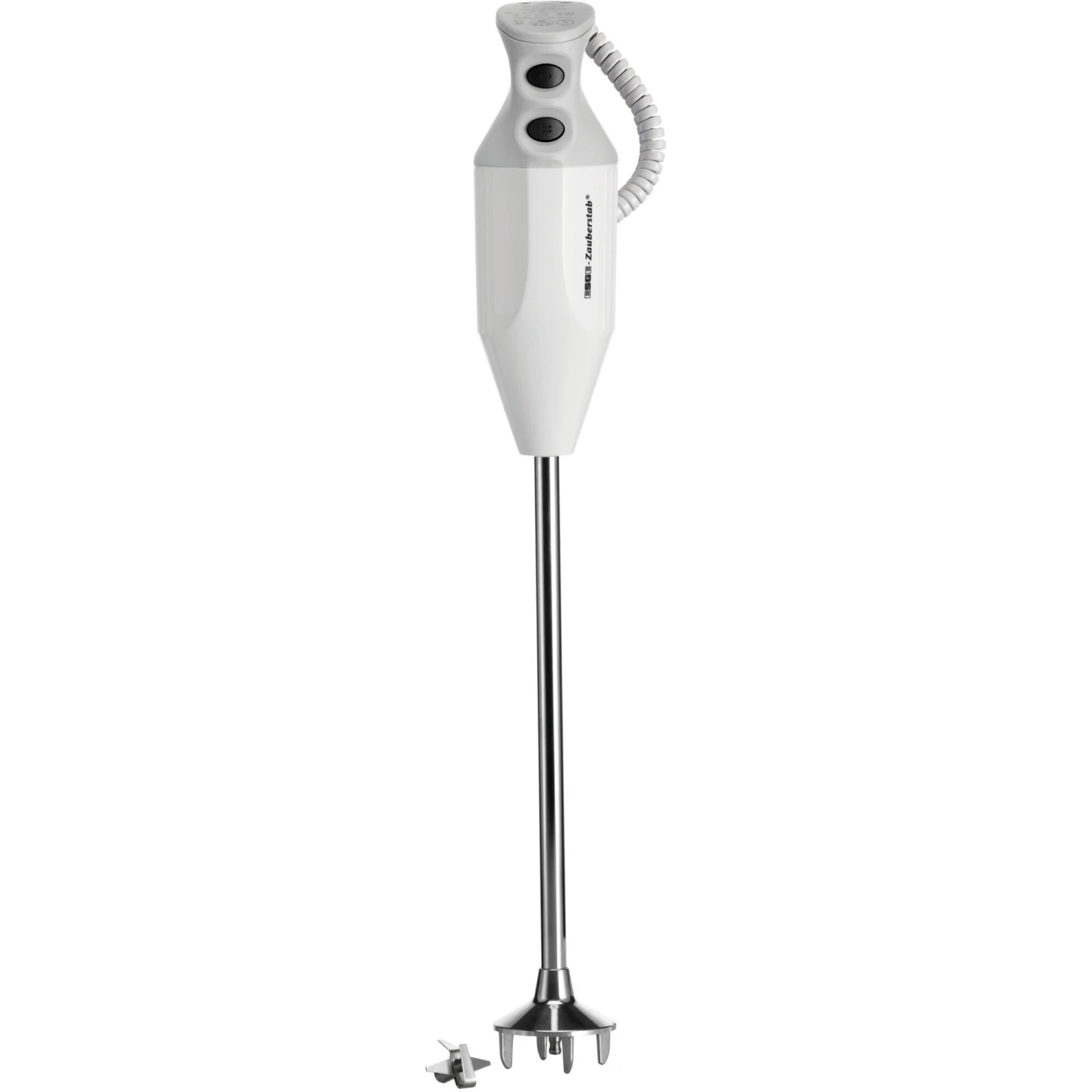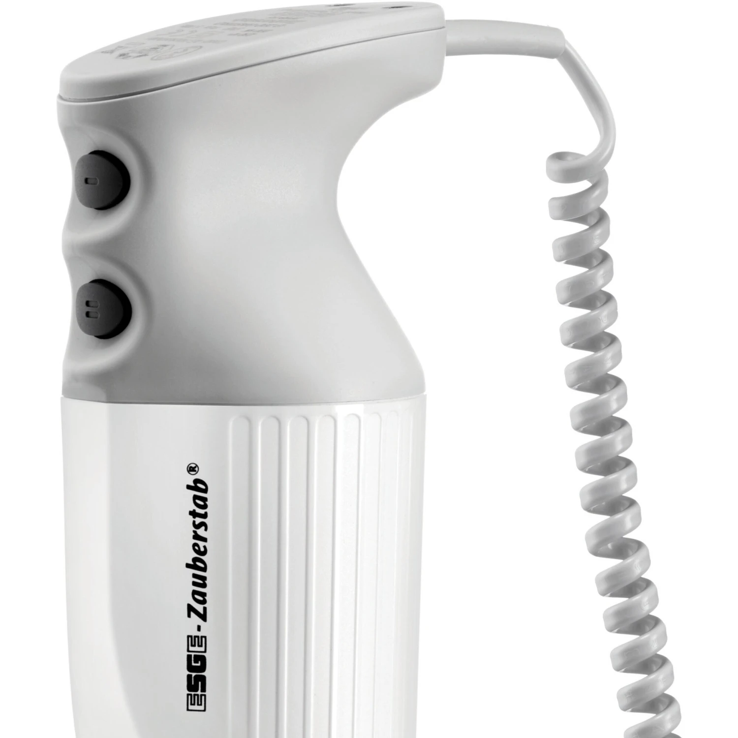 Bis 30 Liter Flüssigkeit verarbeitet der ESGE-Zauberstab G 350 Gastro durch die längere Antriebswelle für eine Eintauchtiefe bis circa 39 Zentimetern mit seinem leistungsstarken, robusten AC-Motor 350 Watt und 18.000 oder 22.000 Umdrehungen pro Minute über den Sicherheits-Twinschalter. Das bis 350 Zentimeter ausziehbare Spiralkabel sorgt für Bewegungsfreiheit.
