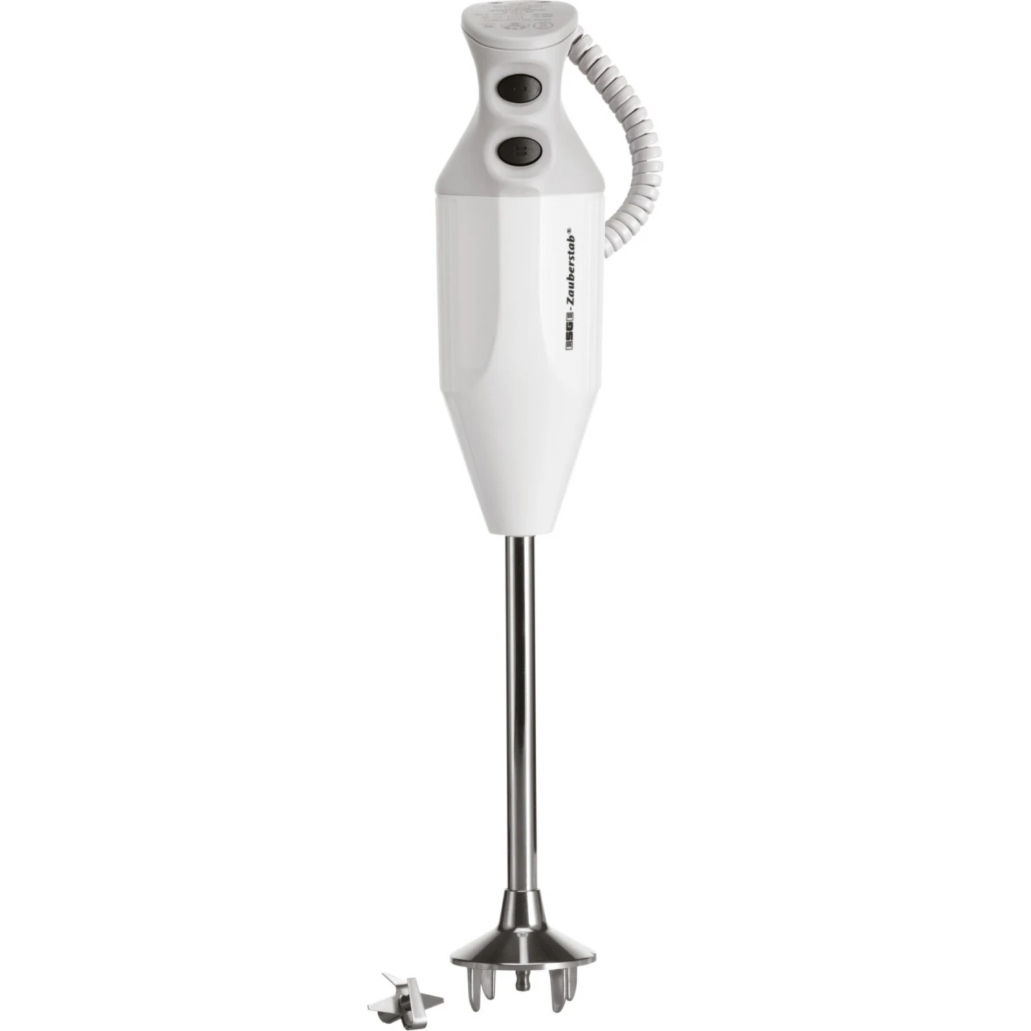 Mit dem ESGE-Zauberstab P 350 Profi kommt ein leistungsstarkes Kraftpaket in die Profi-Küche, denn der langlebige, robuste AC-Motor sorgt mit 350 Watt dafür, dass per Sicherheits-Twinschalter wahlweise mit 18.000 oder 22.000 Umdrehungen pro Minute gearbeitet werden kann. Behälter mit bis zu 20 Liter Flüssigkeit können mühelos eingesetzt werden, denn die längere Antriebswelle ist für eine Eintauchmenge bis circa 29 Zentimeter ausgelegt. Bewegungsfreiheit wird durch das Spiralkabel gesorgt, denn es ist bis zu einer Länge von 150 Zentimetern ausziehbar. Der kleine Alleskönner zerkleinert nicht nur Eiswürfel, er quirlt, hackt, rührt, püriert, passiert und mixt – damit ist der ESGE-Zauberstab P 350 Profi auf alle kulinarischen Eventualitäten eingestellt! Die Aufsteckzentrierung sorgt dafür, dass das Multimesser schnell und komfortabel eingesetzt werden kann.