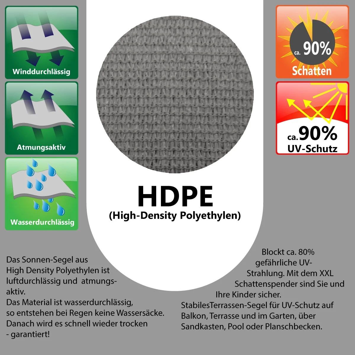 HDPE ist luftdurchlässig und atmungsaktiv. Schwüle Luft kann sich nicht sammeln, sie gelangt durch das Segeltuch nach außen.