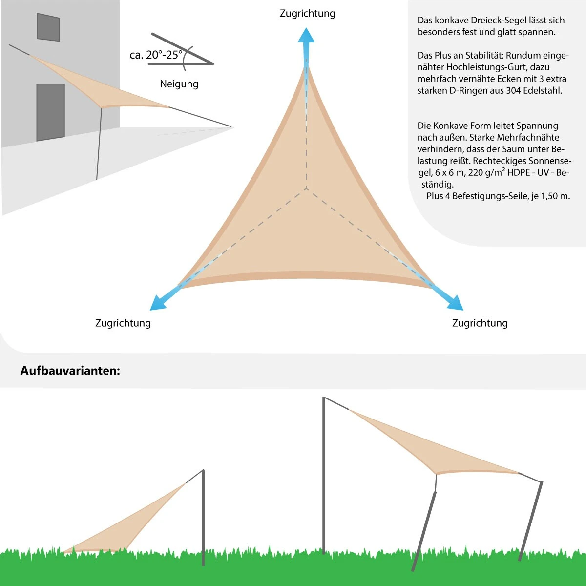 Sogar leichter Windschutz! Die konkave Form leitet Spannung nach außen: Du kannst das Segel besonders fest und glatt spannen.