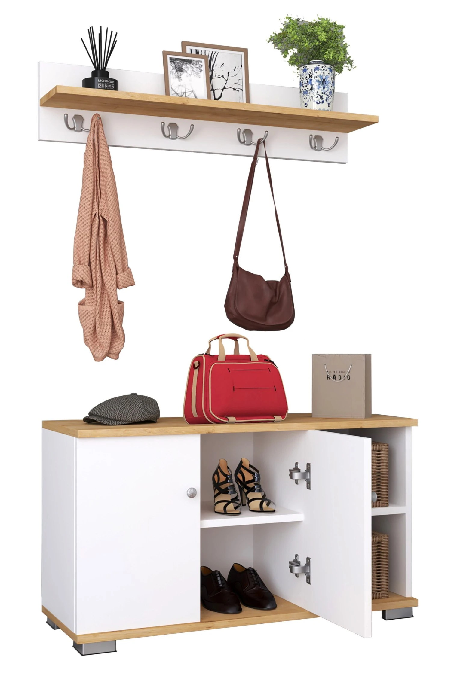 - Modellbezeichnung: 2tlg. Holz Garderobe Dielenmöbel Schuhe Gados L