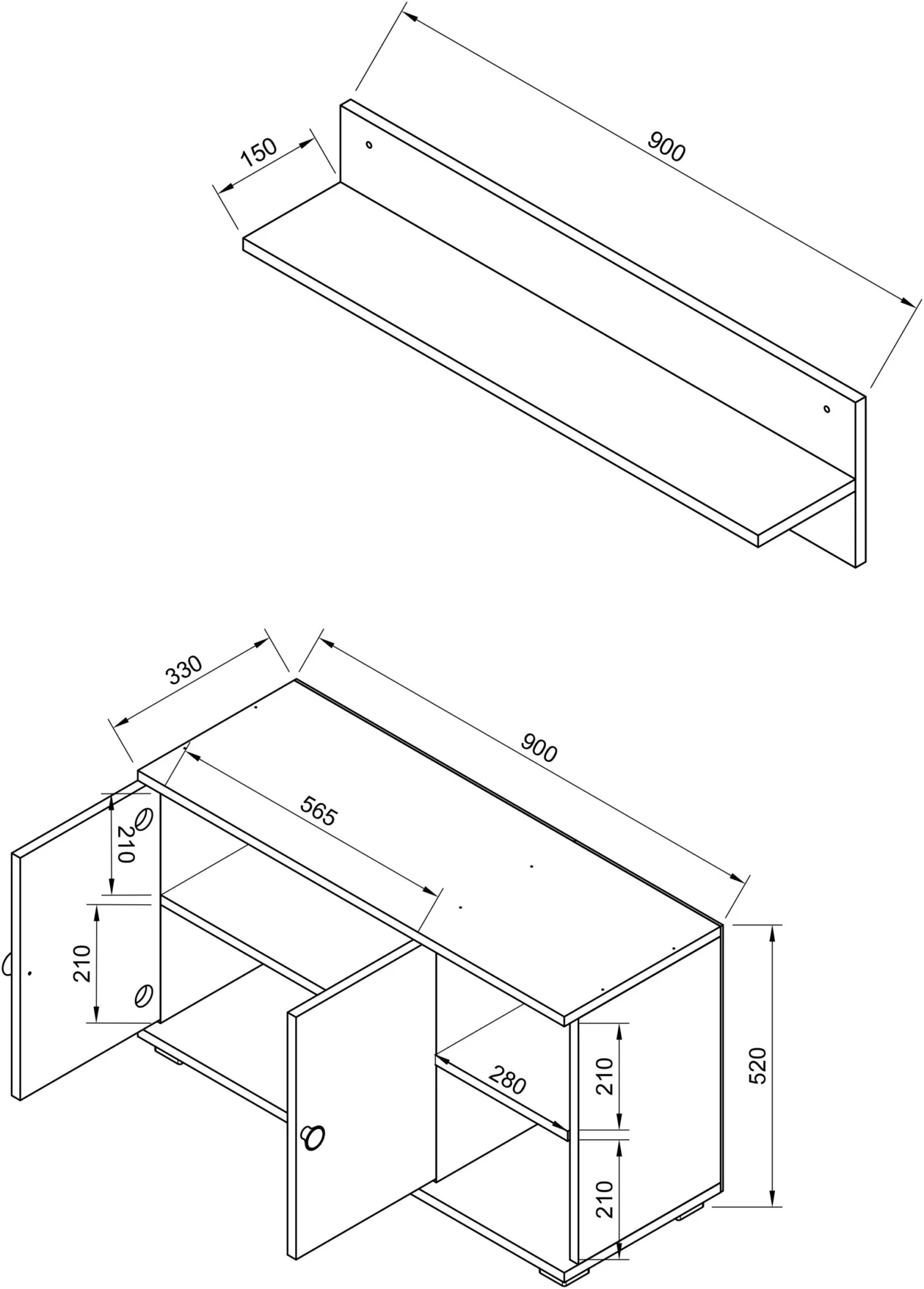 – Maße Schrank ca. H. 52 x B. 90 x T. 33 cm