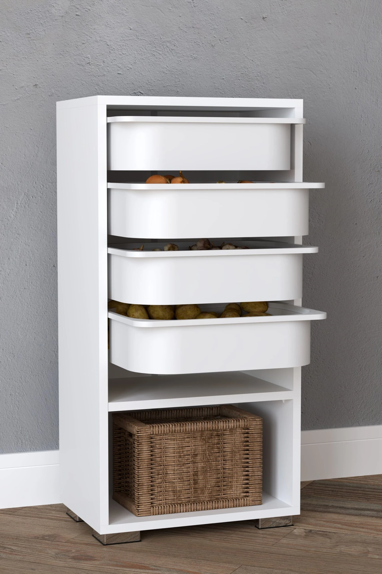 – Regal mit ausziehbaren Schubboxen