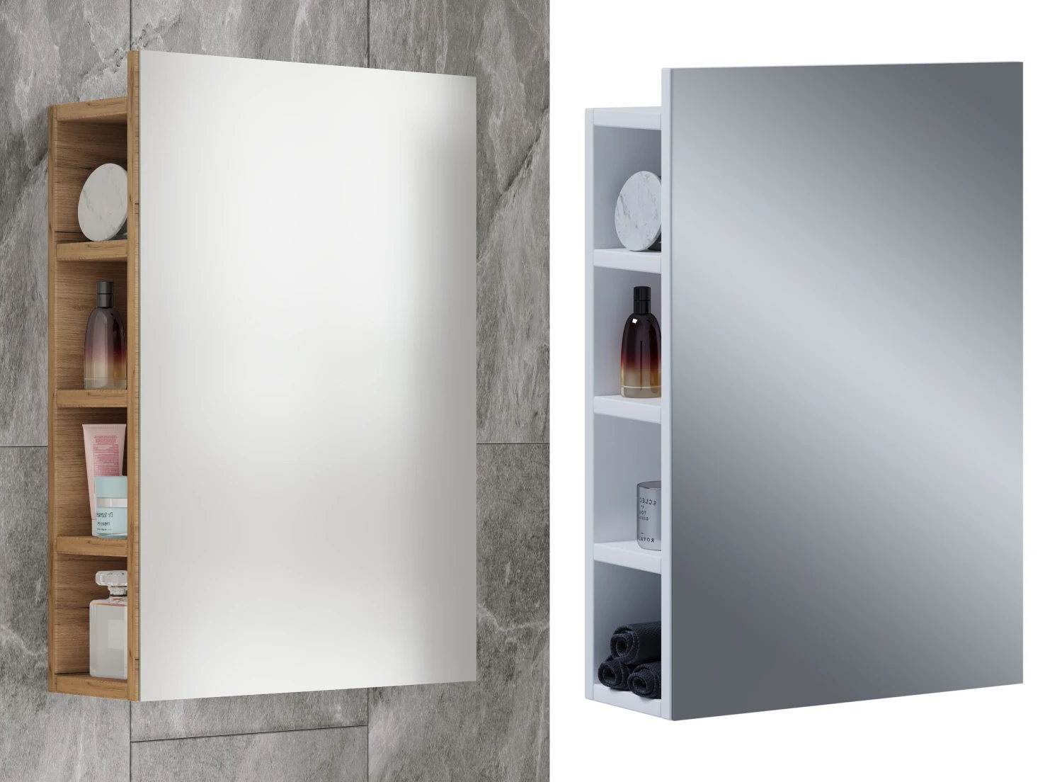 Der Spiegelschrank kann mit der LED-Beleuchtung „VCM Blino“ sowie mit weiteren Badmöbeln der Serie „VCM Flandu“ ergänzt werden.