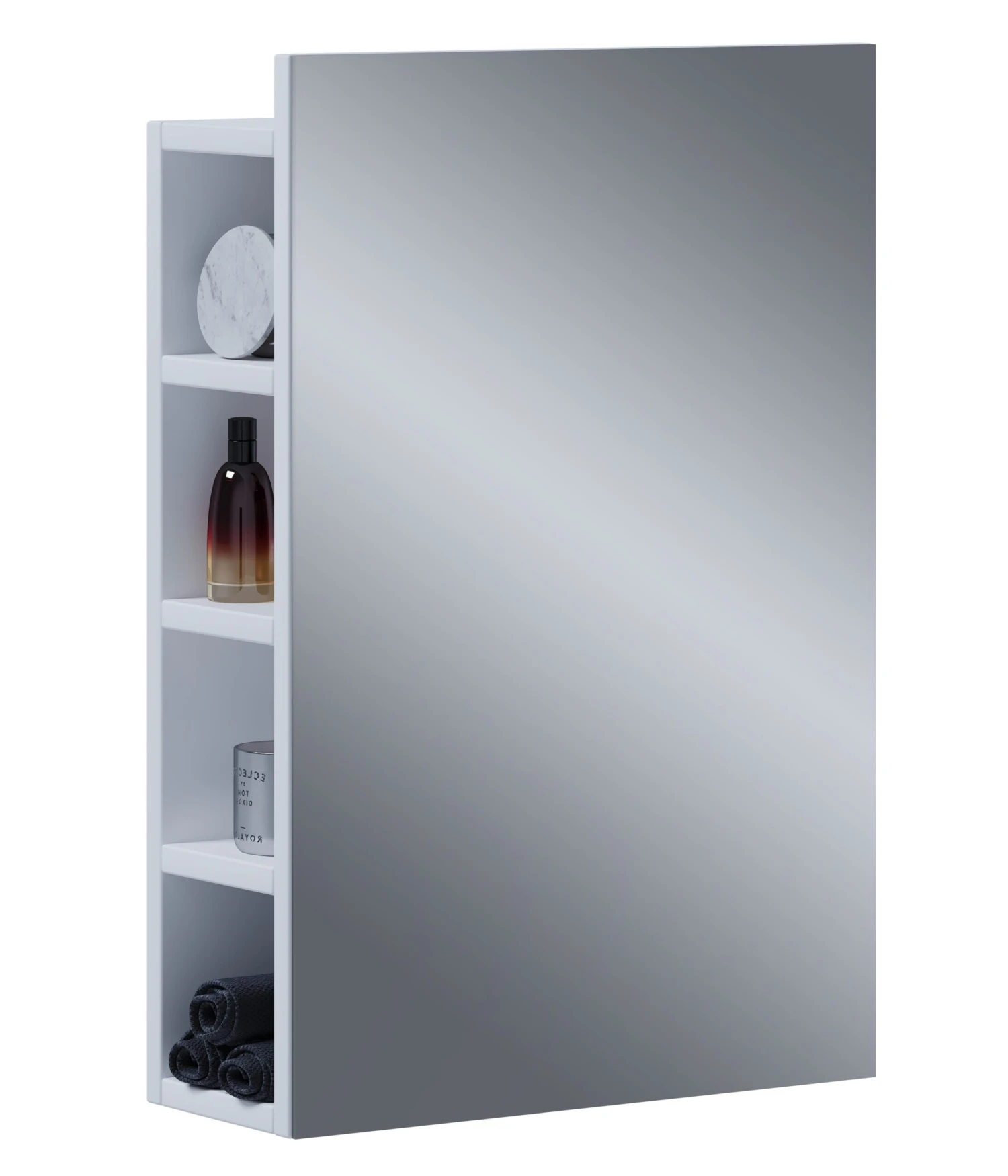Der VCM Spiegelschrank „Flandu L“ passt durch das zeitlose und moderne Design in beinahe jedes Badezimmer. Insgesamt acht seitliche Fächer, die sich hinter dem Spiegel befinden, bieten ausreichend Platz für Badezimmerutensilien und Kosmetikartikel.