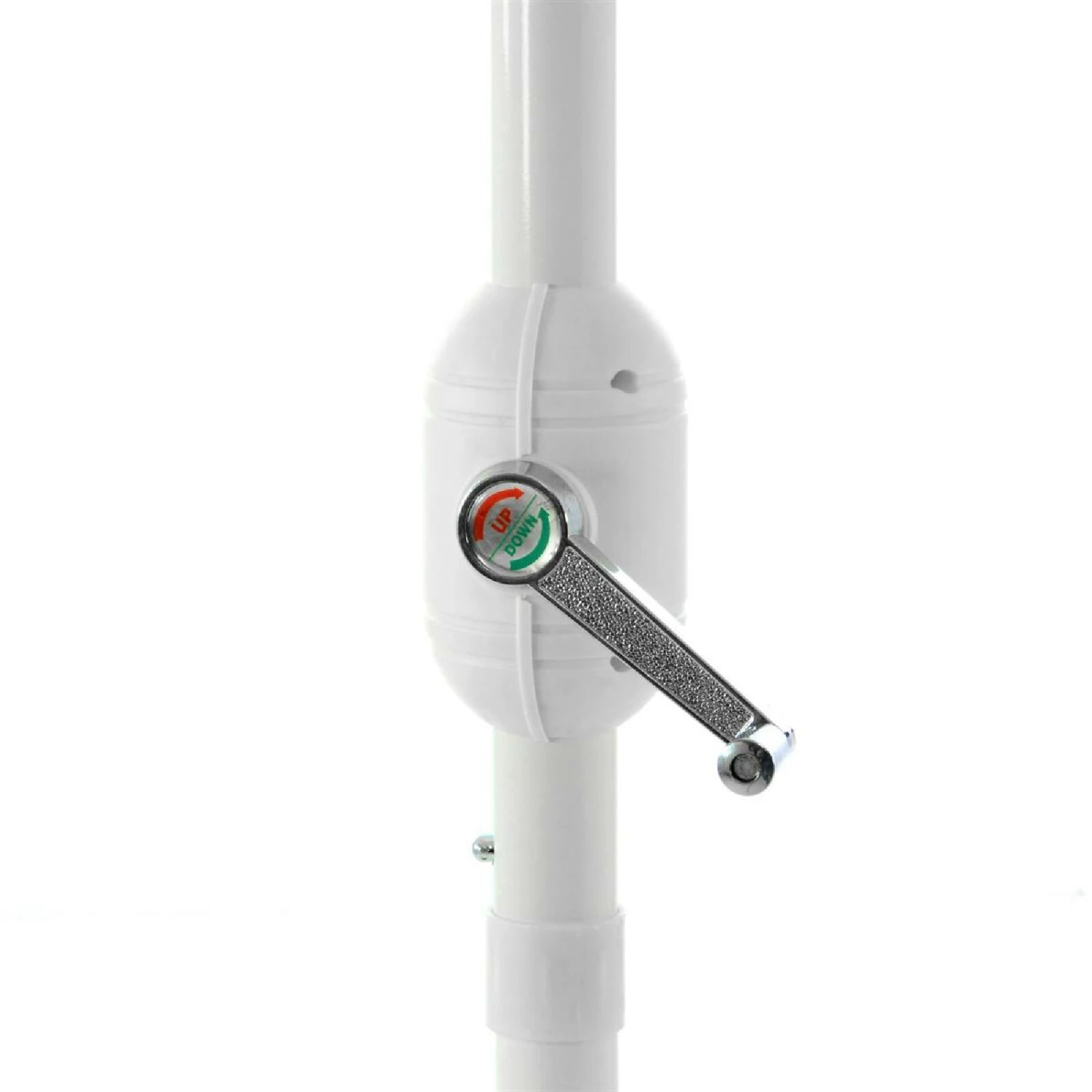 Der 2-teilige Schirmstock und das Gestänge sind aus robustem, weiß lackiertem Stahl.