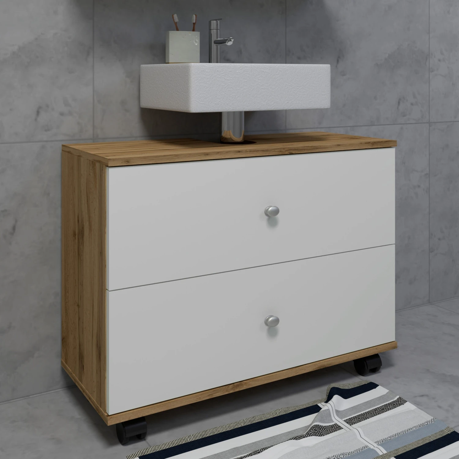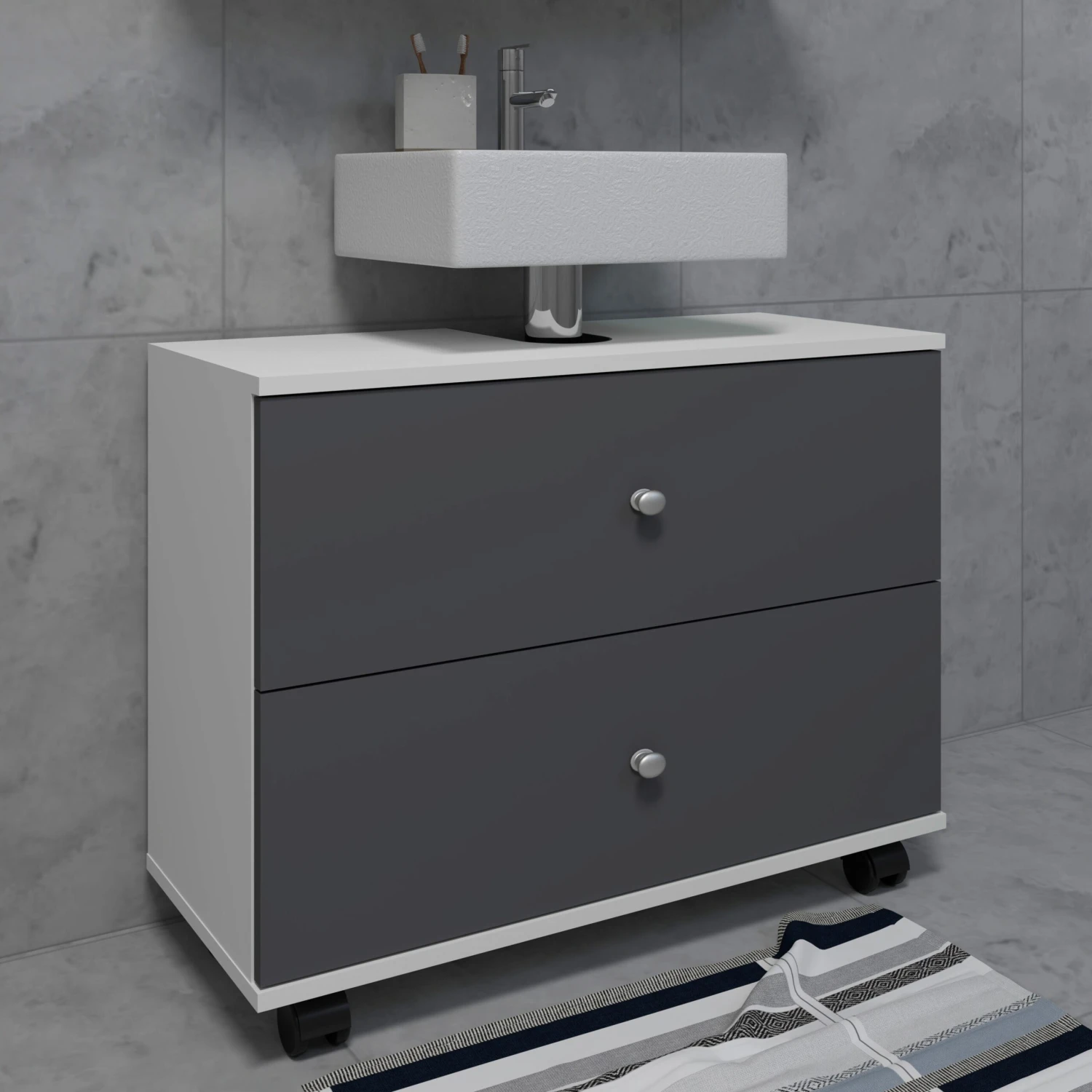 - Modellbezeichnung: Badmöbel Badunterschrank Rollen Schublade Nilosi L