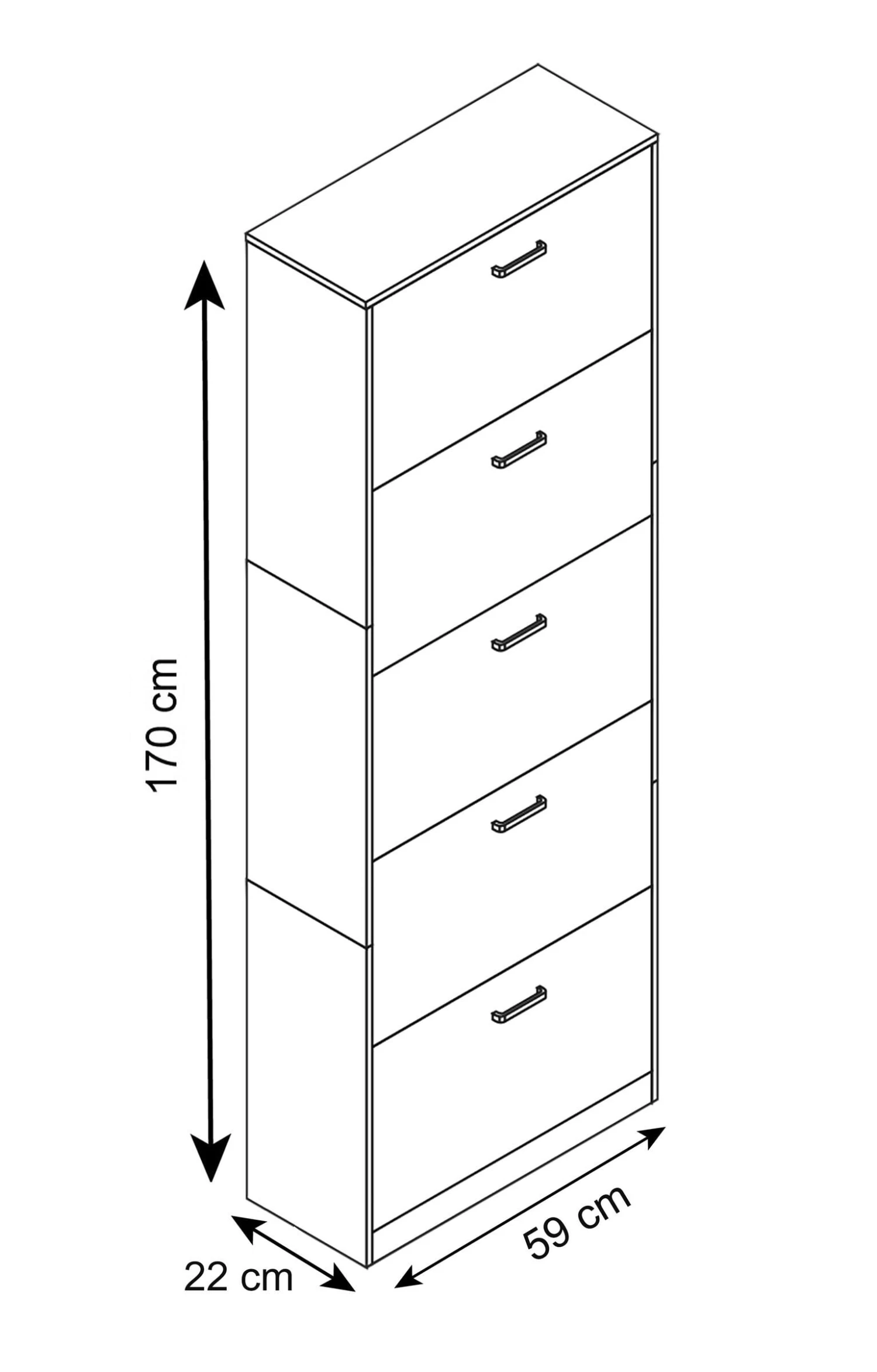 - Maße: H. 170 x B. 59 x T. 22 cm