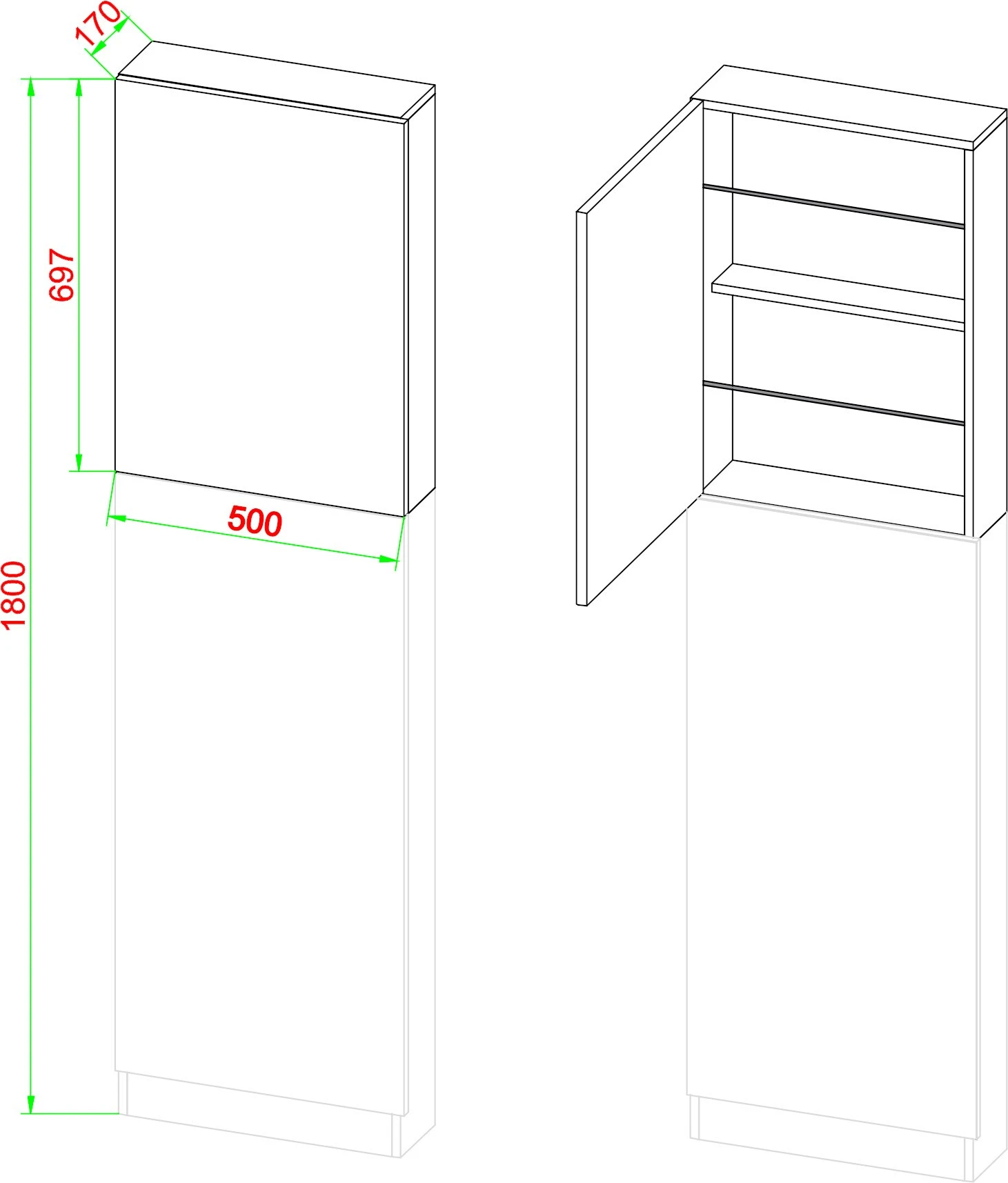 - Maße: H. 180 x B. 50 x T. 17 cm