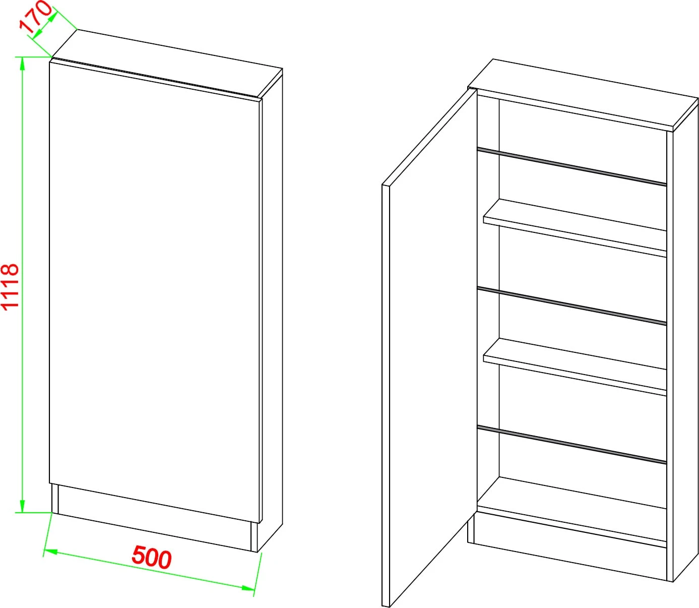 – Maße Schuhschrank ca. H. 180 x B. 50 x T. 17 cm