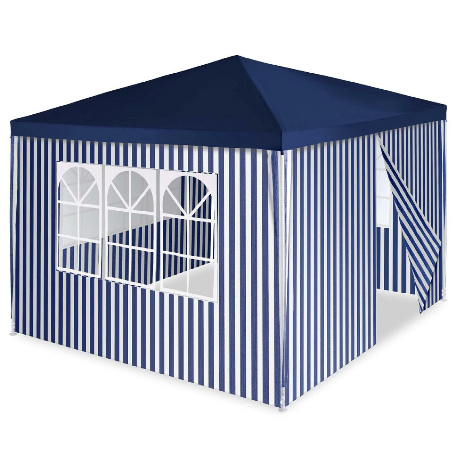 Praktischer und leichter Allzweck-Pavillon mit 4 Seitenteilen/Seitenwänden (1 Seitenteil ohne Fenster mit Reißverschluss im Eingangsbereich und 3 Seitenteile mit Fenster) für Garten, Terrasse, Strand, Kindergeburtstag, Einschulung, Markt, Camping, Festival, Hochzeit, Catering, Messestand, Empfänge.