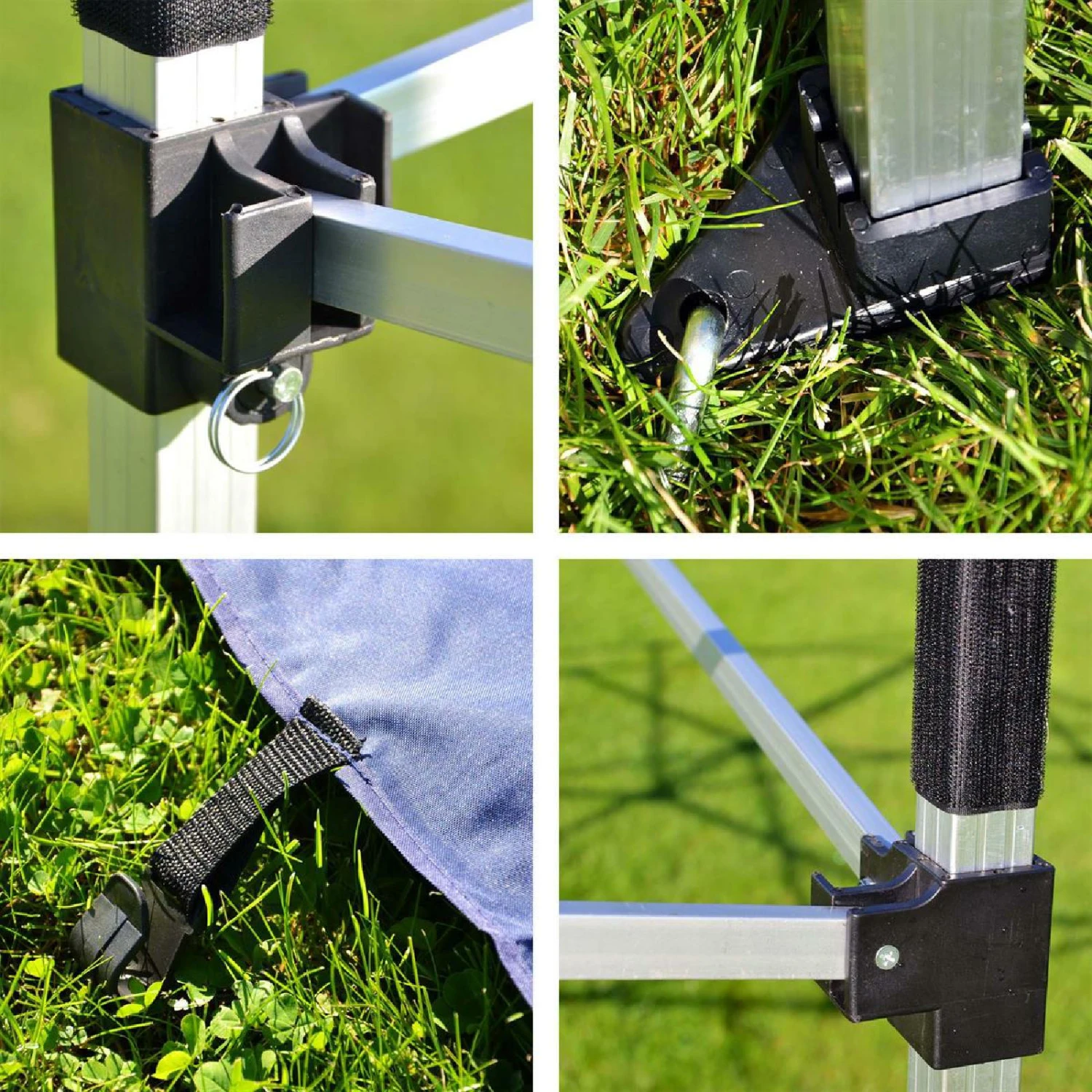 Für einen optimalen Wetterschutz sorgen das regendichte Dach, die wasserdichte Dachplane aus 270 g/m² Polyester Material, eine zusätzliche PVC-Beschichtung und 2 Seitenteile mit Fenster (PE 180 g/m² mit Polyamid beschichtet). Dieses Faltzelt schützt Sie also bei einer Feier oder auf dem Markt vor Sonne und Regen und hält bei korrekter Montage und ordnungsgemäßer Abspannung auch so manchem Windstoß stand.