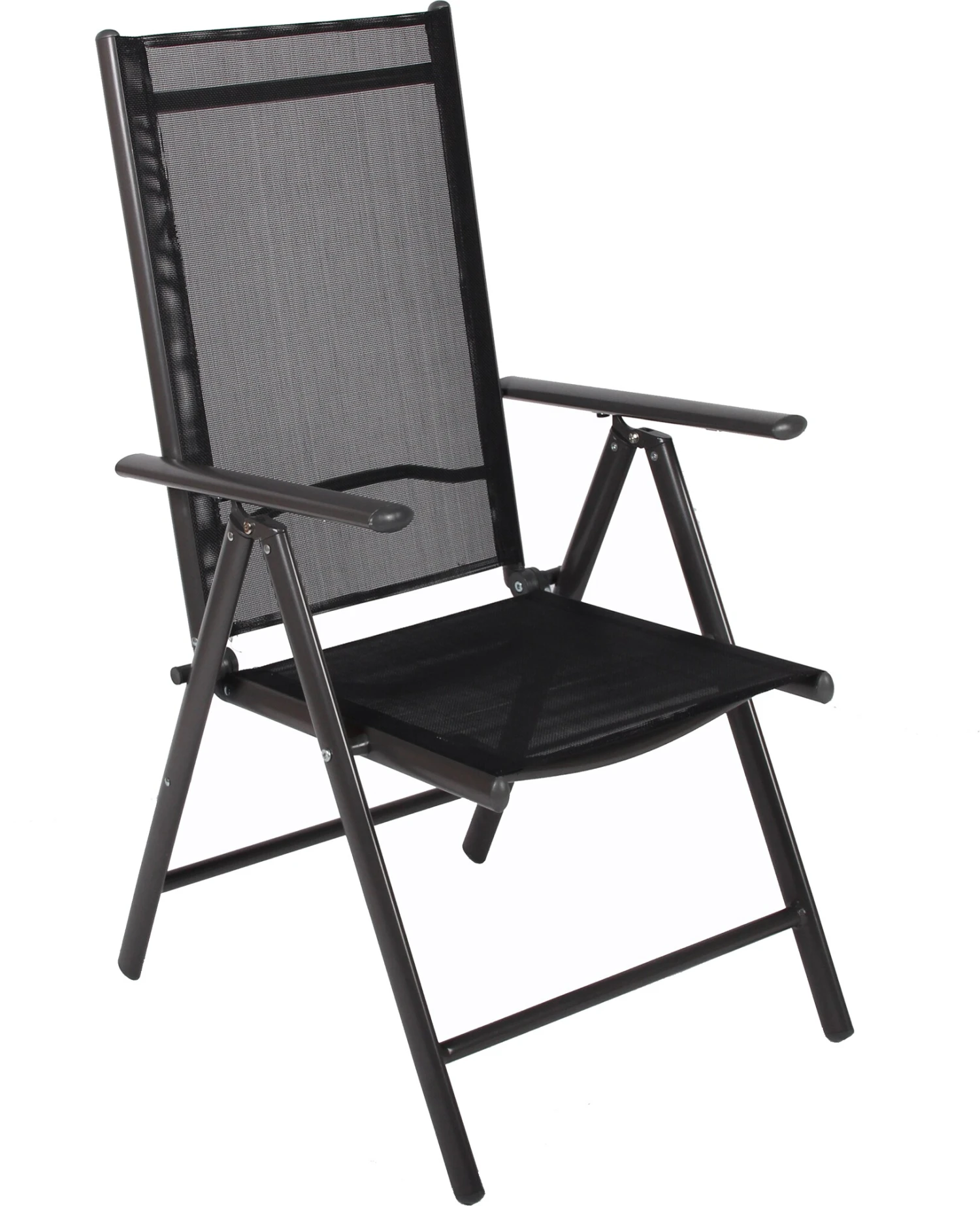 Armlehnen und verstellbare Rückenlehnen spenden zusätzlichen Komfort. Bei Nichtgebrauch können die Stühle platzsparend zusammengeklappt werden.