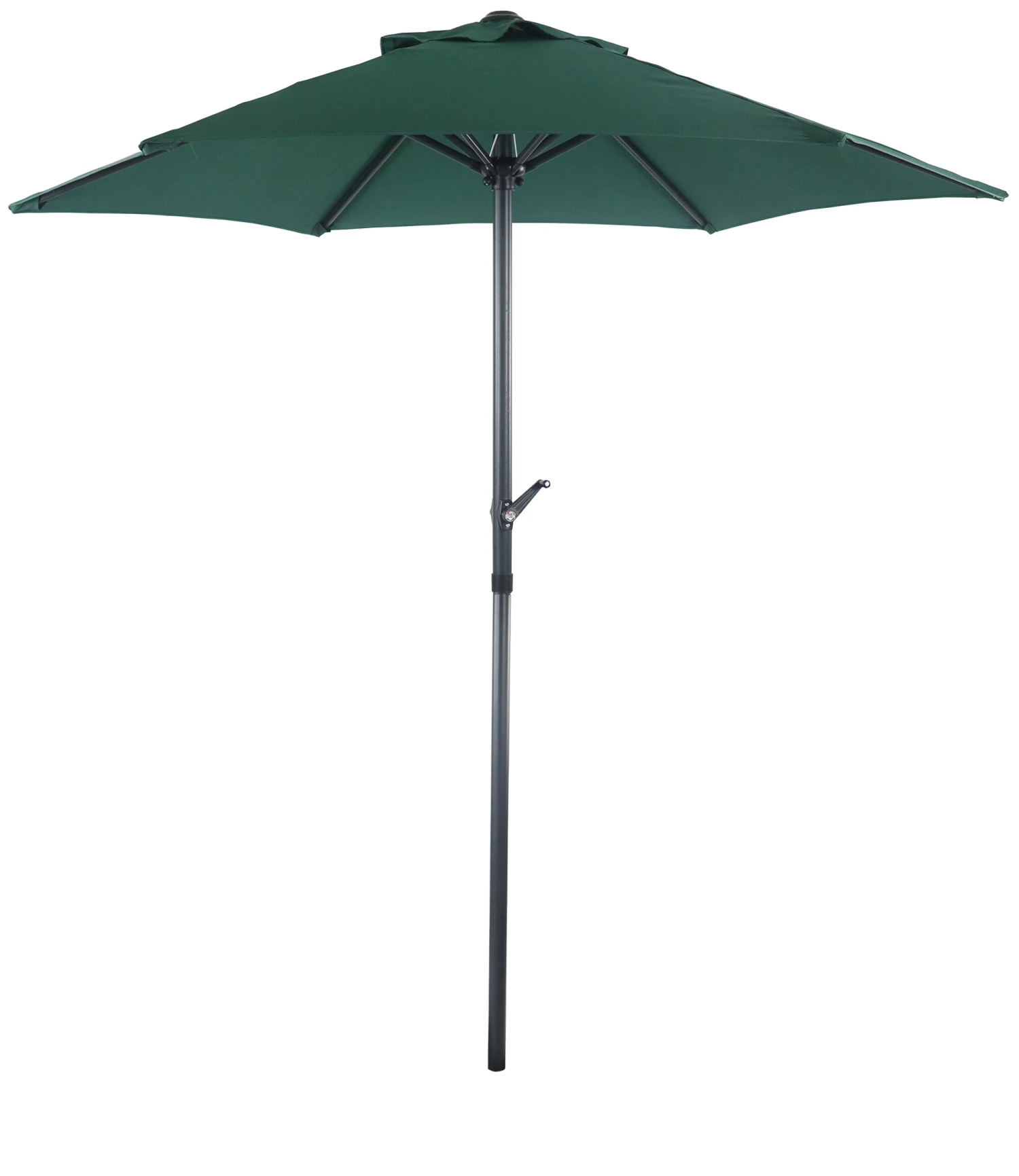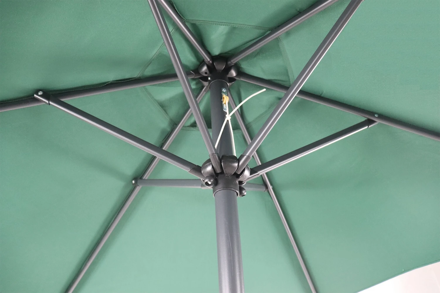 Die Stange ist höhenverstellbar und für einen platzsparenden Transport in der Mitte teilbar. Die Kurbel ermöglicht ein bequemes öffenen und schließen des Sonnenschirms.