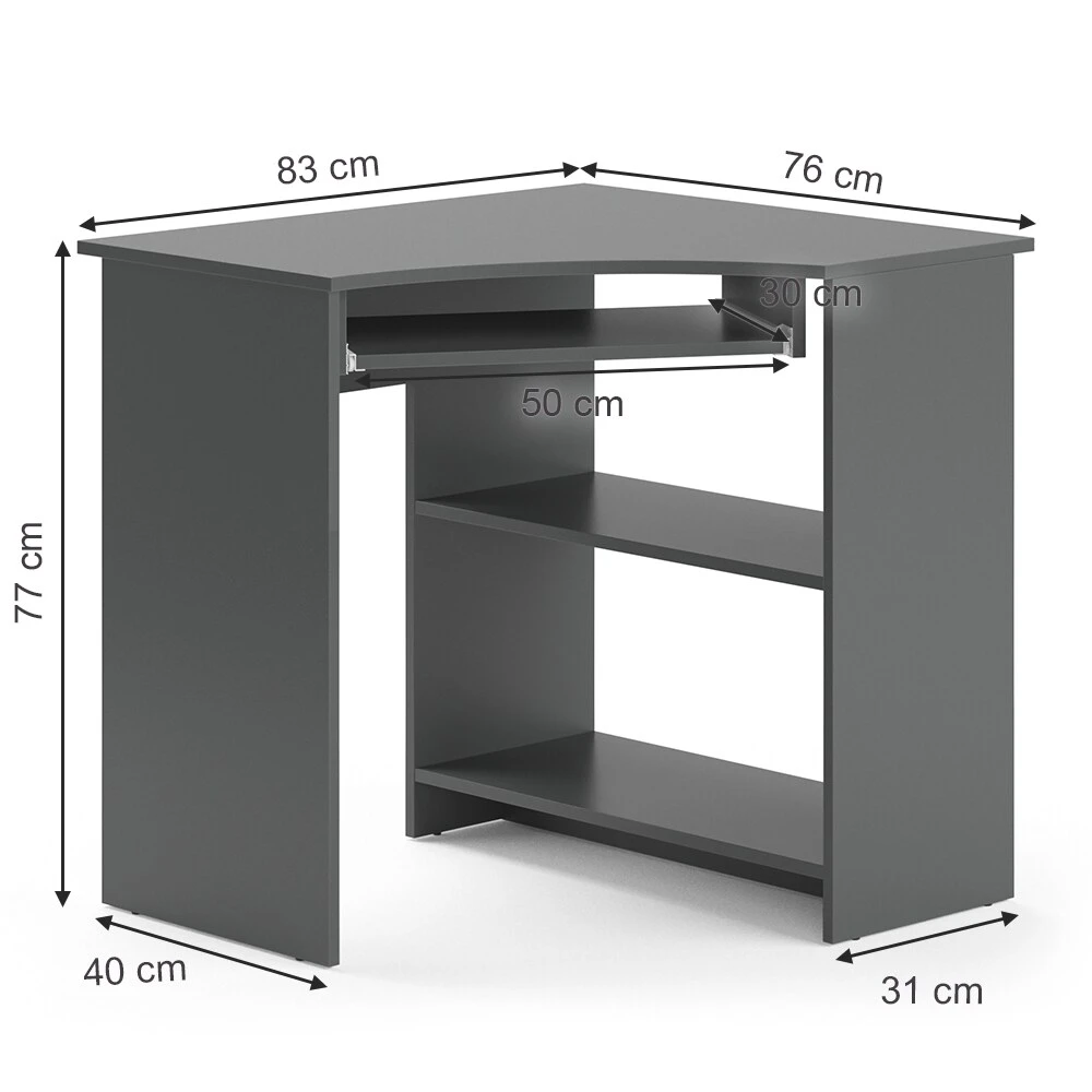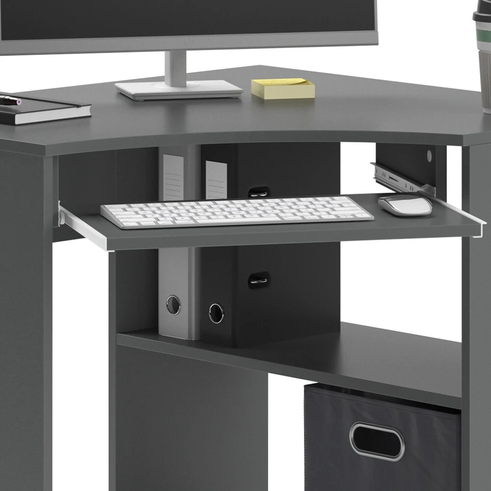 Unser Eckcomputertisch Odin füllt jede Ecke mit Stil und Praktikabilität. Seien es die ausziehbare Ablage oder die großen Fächer unter dem Tisch,