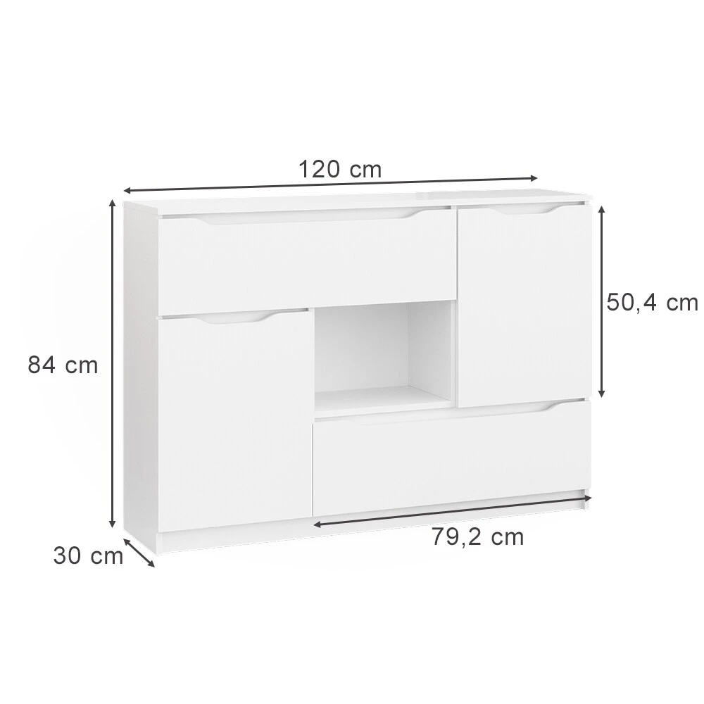 • Die Gesamtmaße betragen 120 x 84 x 30 cm (BxHxT).