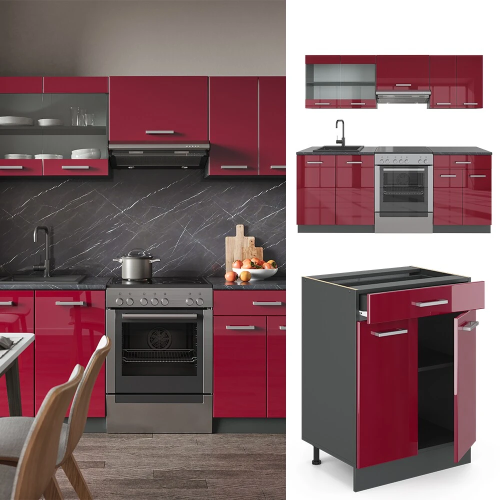 • Im Lieferumfang enthalten sind 5 einzelne Küchenschränke, eine bebilderte und leicht verständliche Montageanleitung sowie die dazugehörigen Montagematerialien.