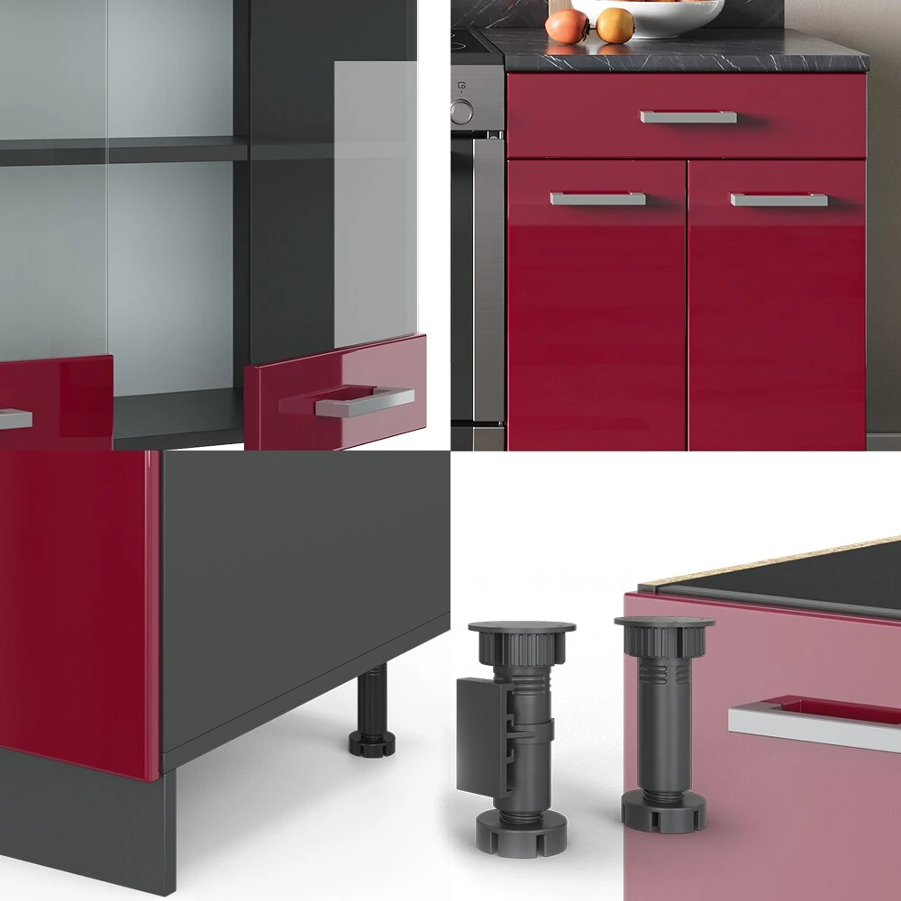 Die Schränke sind mit höhenverstellbaren Stellfüßen ausgestattet, dank denen sich Bodenunebenheiten mühelos ausgleichen lassen.