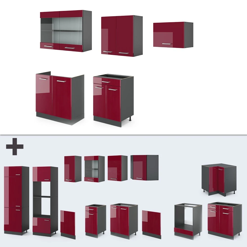 • Die Küche verschafft viel Stauraum durch die geräumigen Schränke und ist noch beliebig erweiterbar mit anderen Modulen der Serie R-Line in unserem Shop.