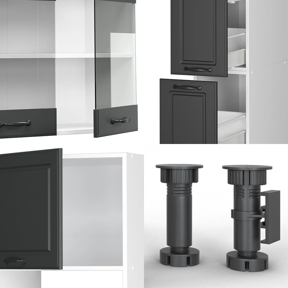 Die Schränke sind mit höhenverstellbaren Stellfüßen ausgestattet, dank denen sich Bodenunebenheiten mühelos ausgleichen lassen.