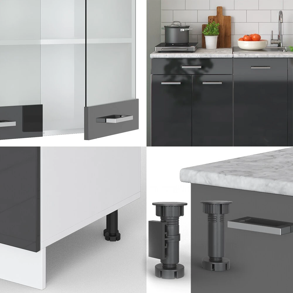 Die Schränke sind mit höhenverstellbaren Stellfüßen ausgestattet, dank denen sich Bodenunebenheiten mühelos ausgleichen lassen.
