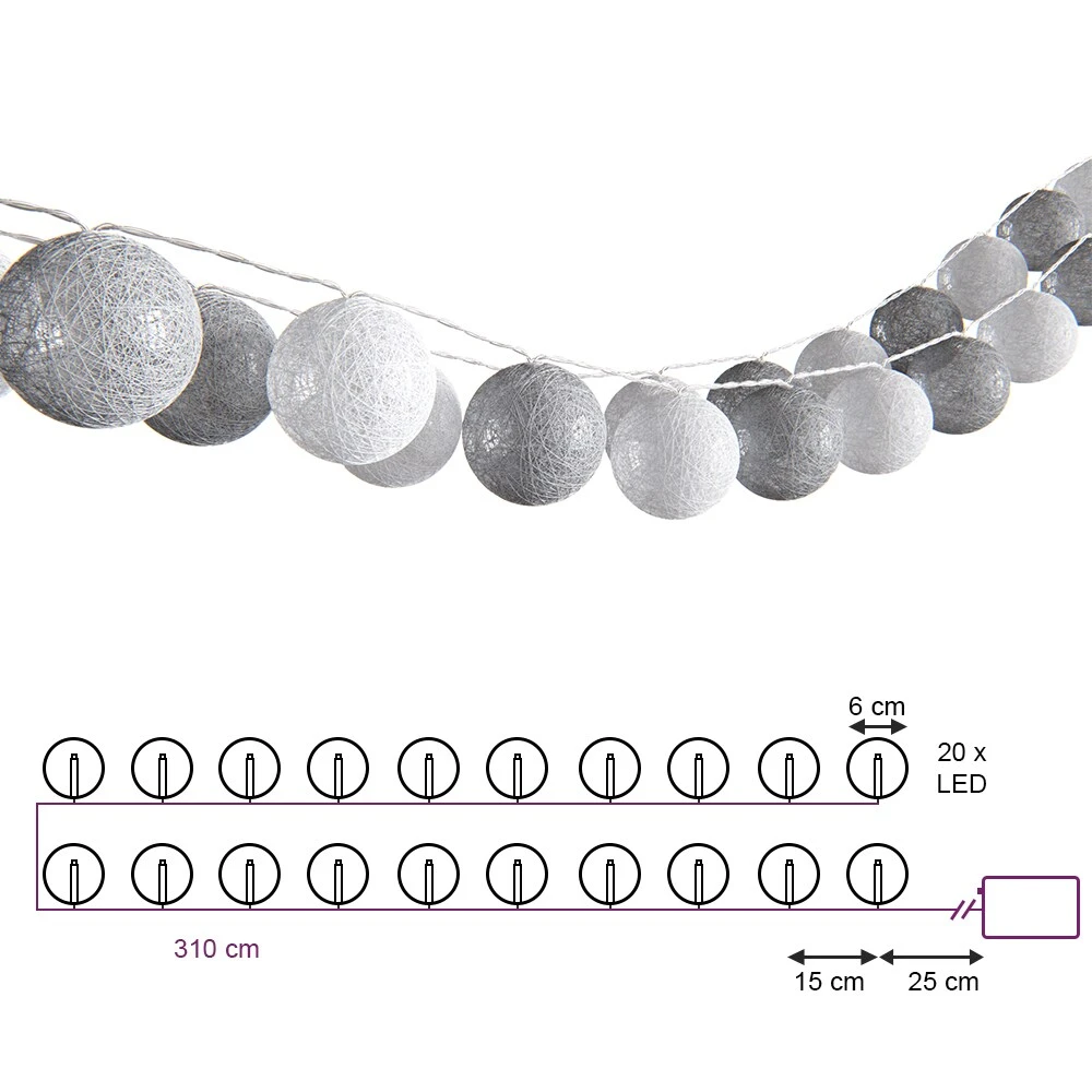 20 Kugeln pro Lichterkette davon jeweils 10 Kugeln Weiß und Grau