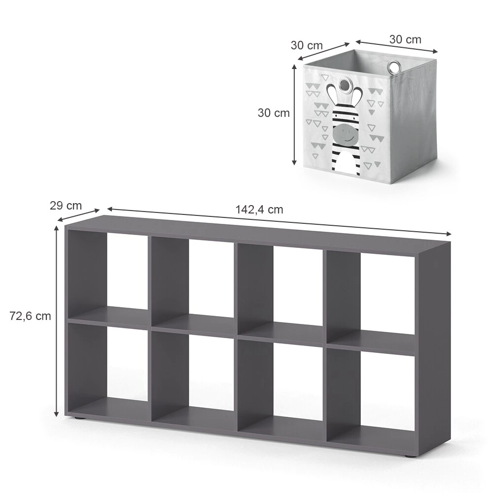 • Dieses Möbelstück bietet insgesamt 8 Fächer inklusive unserer Kinderfaltboxen und die Möglichkeit es beliebig zu bestücken.