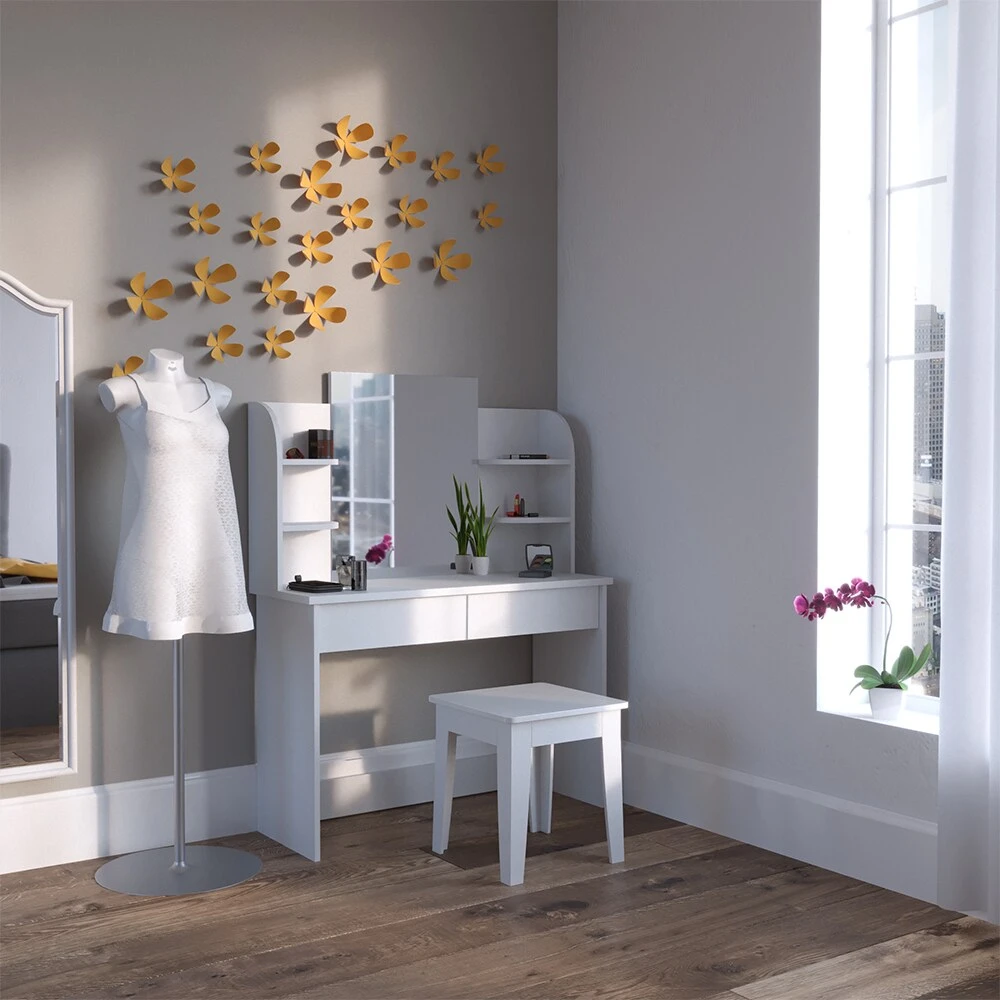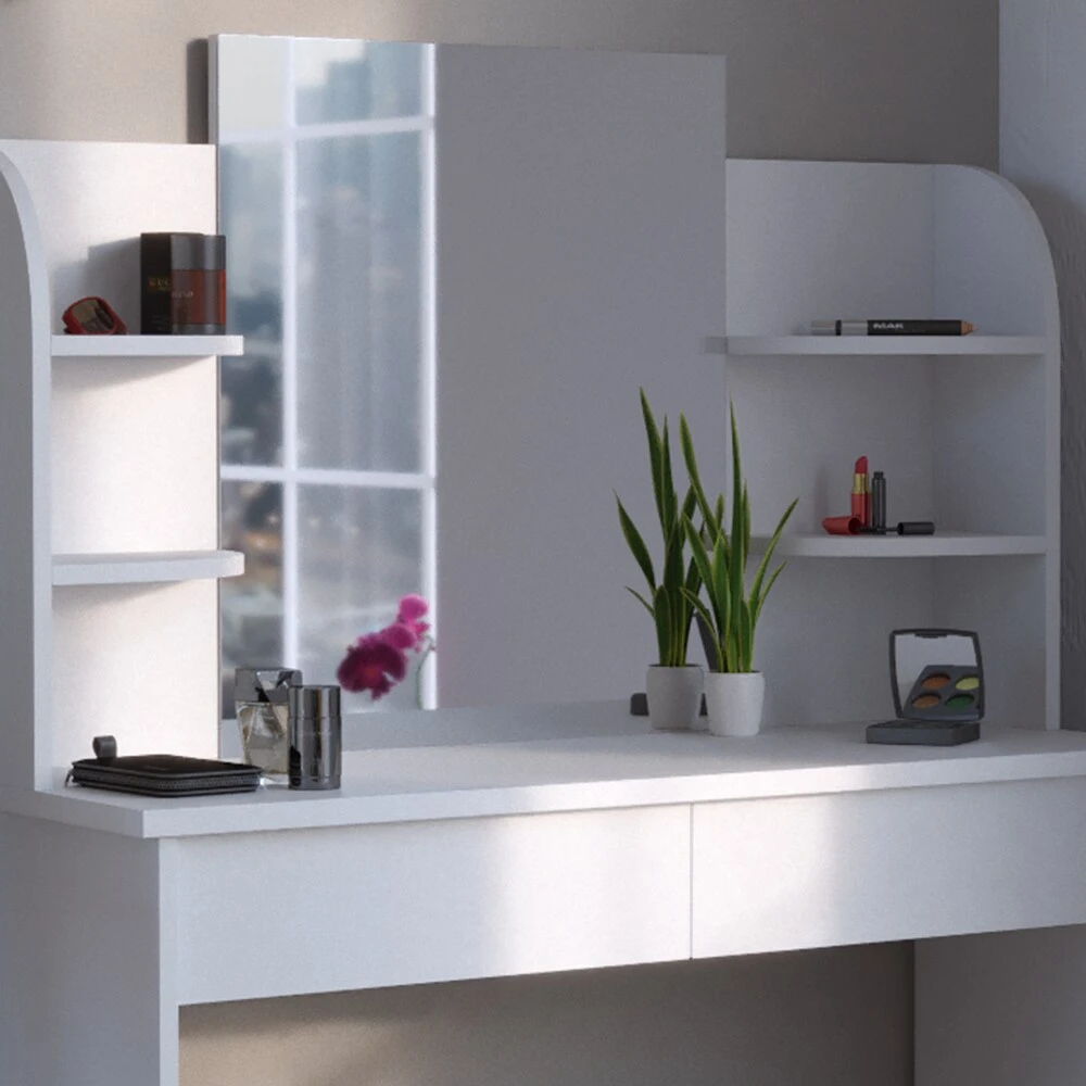 Die gradlinige Optik macht den Schminktisch zu einem stilsicheren Möbelstück, das jeden Raum aufwertet. Die hochwertige Verarbeitung rundet das Gesamtkunstwerk ab.