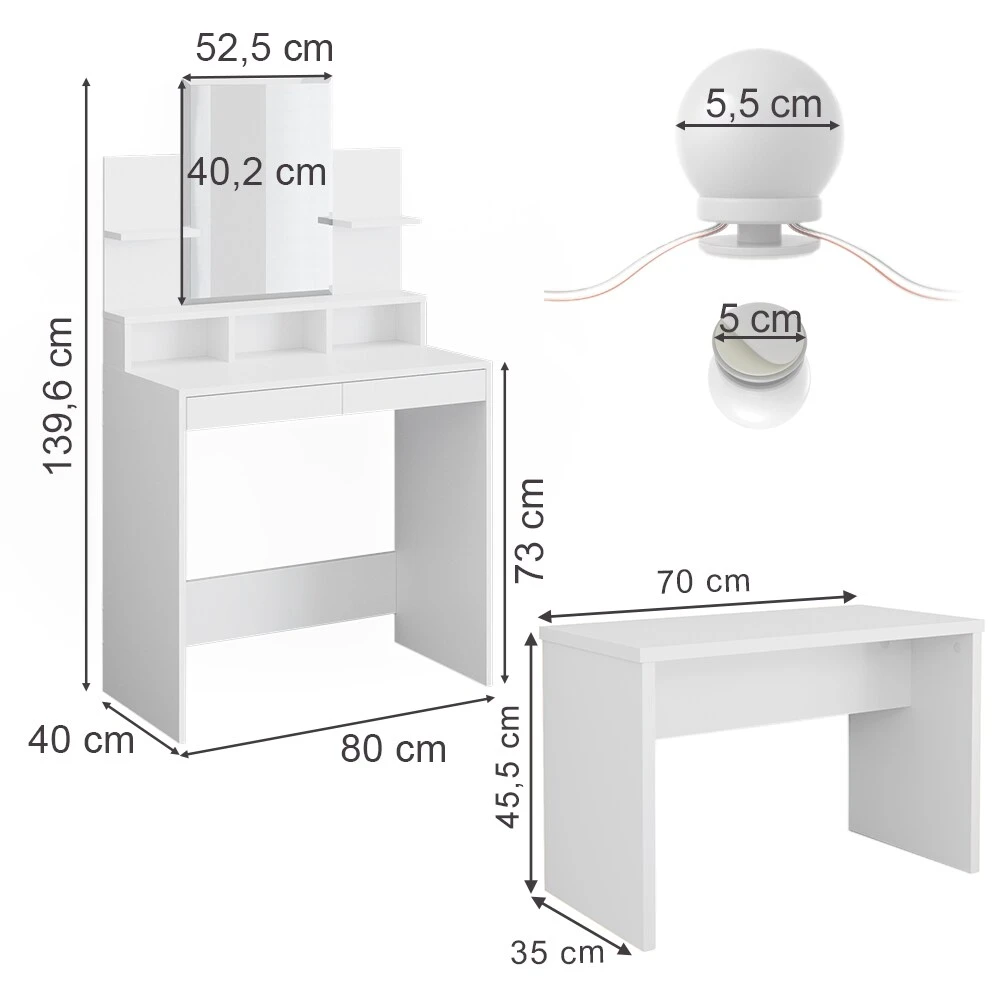 Schminktisch: 80 x 139,6 x 40 cm (BxHxT)