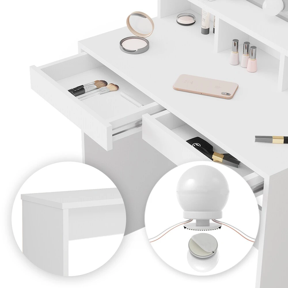 • Dank der vielen Ablagen und Schubfächer werden Sie ausreichen Platz und Stauraum für alle Ihre Schminkartikel finden.