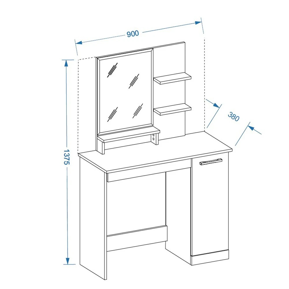 • Maße Schminktisch Julia: 90 x 137,5 x 38 cm (BxHxT)
