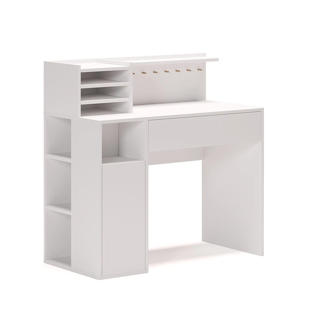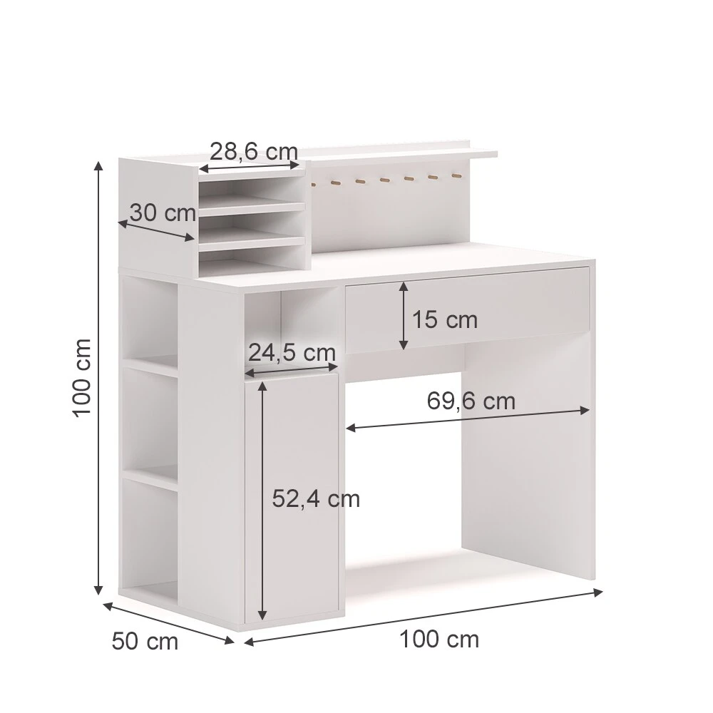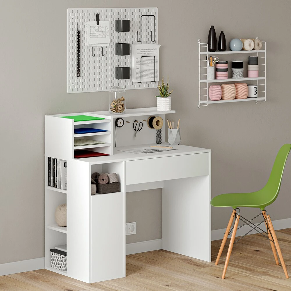 • Der Aufbau des Basteltisches mit Schub- und Türfach, kleinen Haken und diversen Regalanbauten schafft jedem die Möglichkeit sein Hobby gut geordnet und strukturiert zu organisieren.
