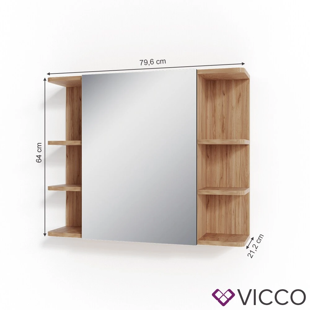 • Die Gesamtmaße des Spiegelschrankes betragen 80 x 64 x 21 (BxHxT).